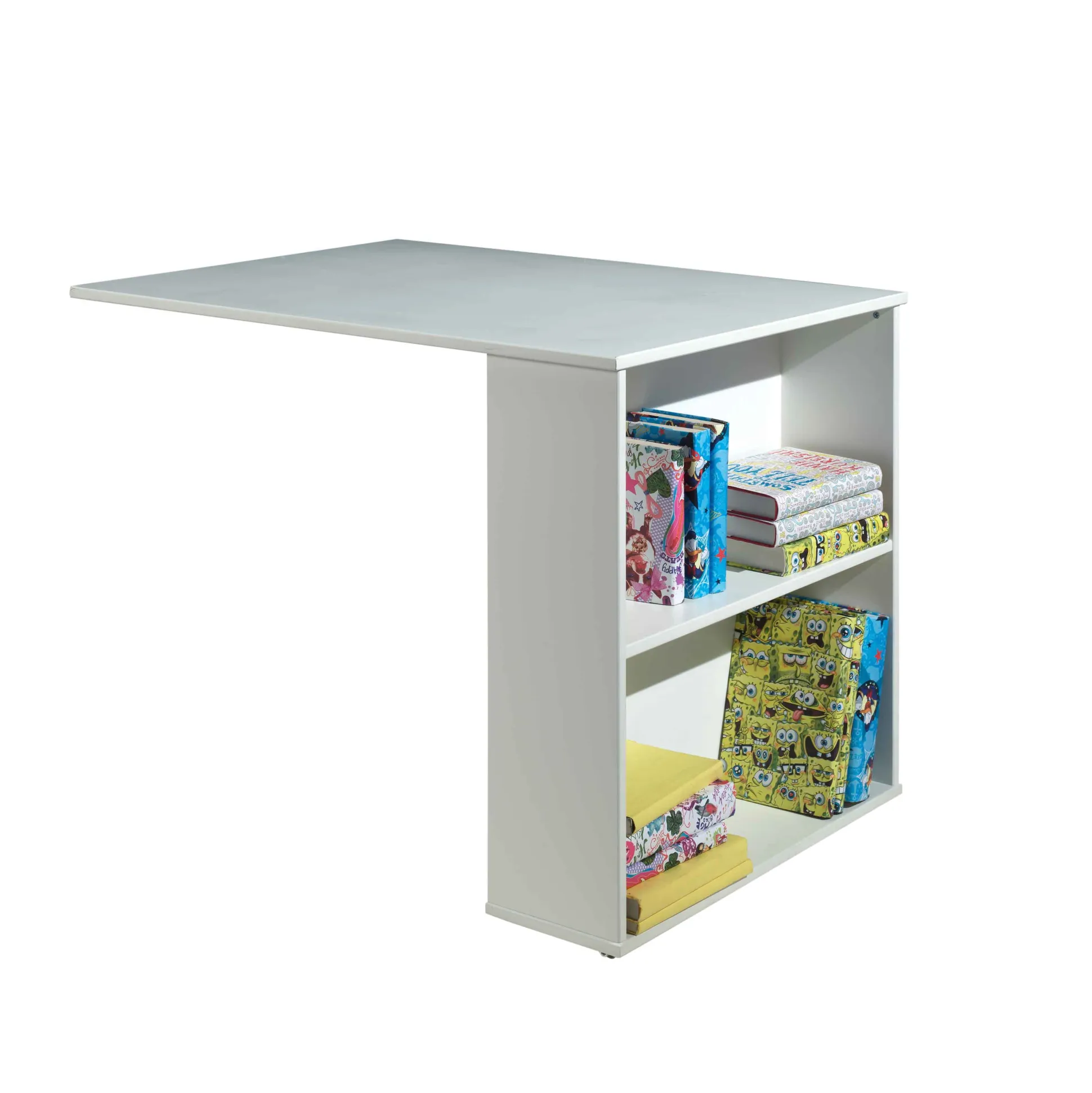 Dit stevige kinderbureau is gemaakt van MDF en is grijs gelakt, door middel van zijn soepele geleiders schuift dit bureau gemakkelijk onder de hoogslaper. Wanneer je geen gebruik maakt van het bureau is er zo meer ruimte om te spelen! Op de kopse kant van het bureau bevinden zich twee handige schappen om spullen in kwijt te kunnen. Bekijk ook de rest van deze serie.