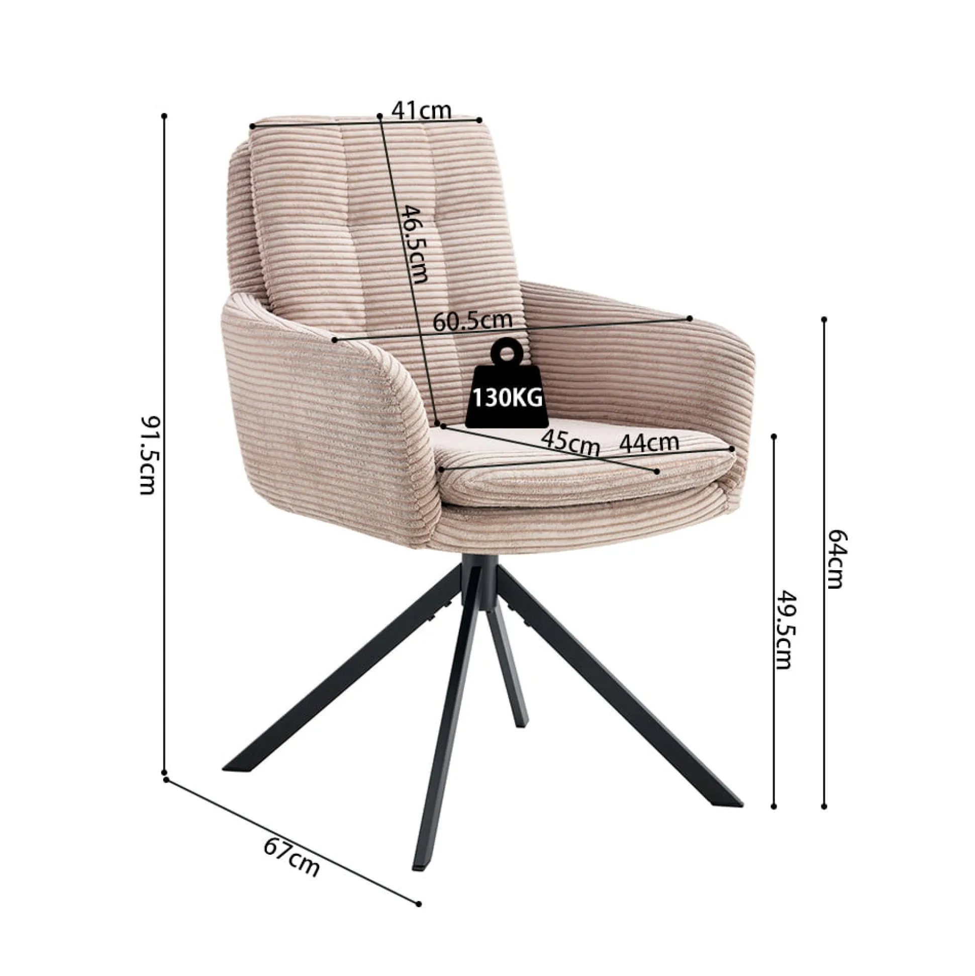 - Maximaal belastbaar gewicht: 130 kg