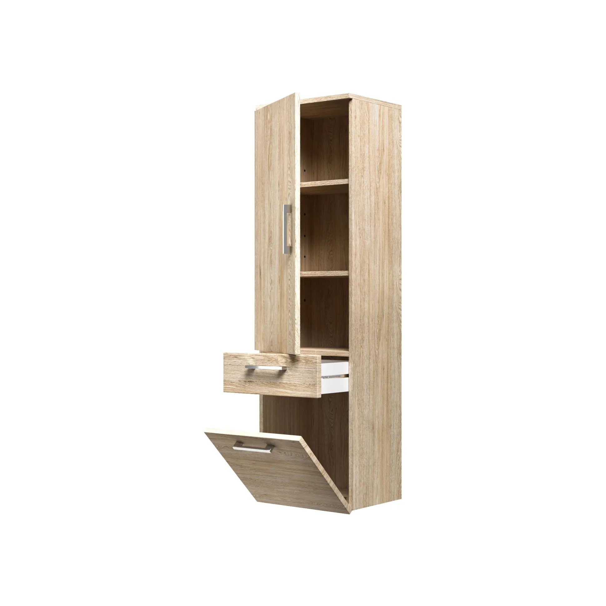 Deze stijlvolle badkamerkast heeft hoogglans spaanplaat-fronten gecombineerd met metalen hangrepen. Geruisloze sluiting van deuren, kleppen en lade dankzij het soft-close systeem. Gemakkelijk te plaatsen naast het bad meubel voor extra opbergruimte. Achter de deur bevinden zich 2 verstelbare legplanken. Door zijn melamine afwerking is deze kast beter schoon te houden en langer beschermd tegen stof en vuil. Gemakkelijk te monteren door middel van bijgeleverde montagehandleiding. Bekijk ook de andere elementen uit deze serie!