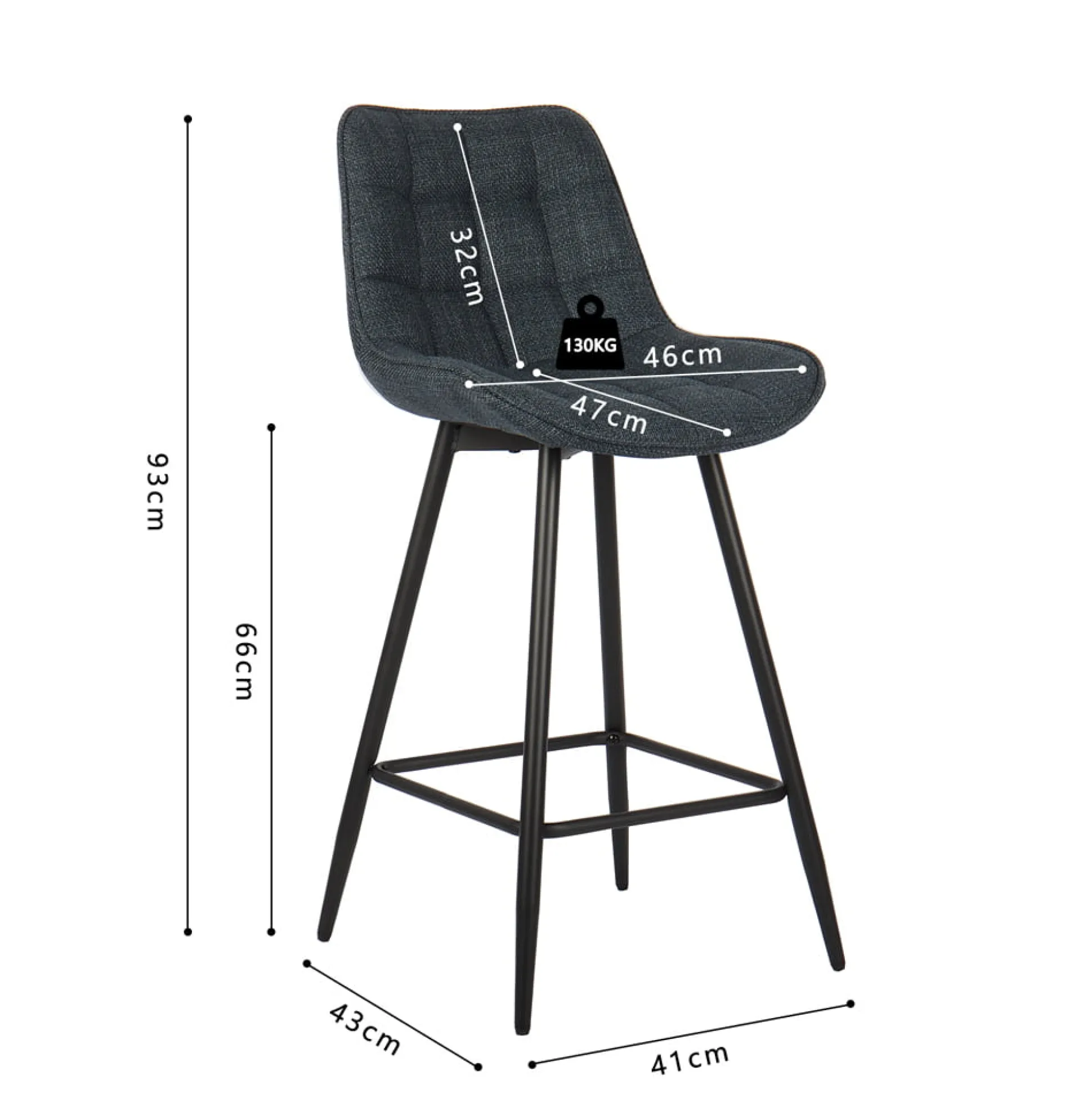 - Afmetingen: Hoogte: 93 cm, Zithoogte: 66 cm, Breedte: 46 cm.