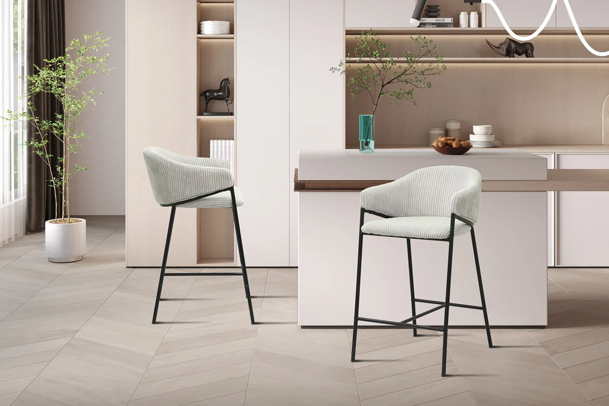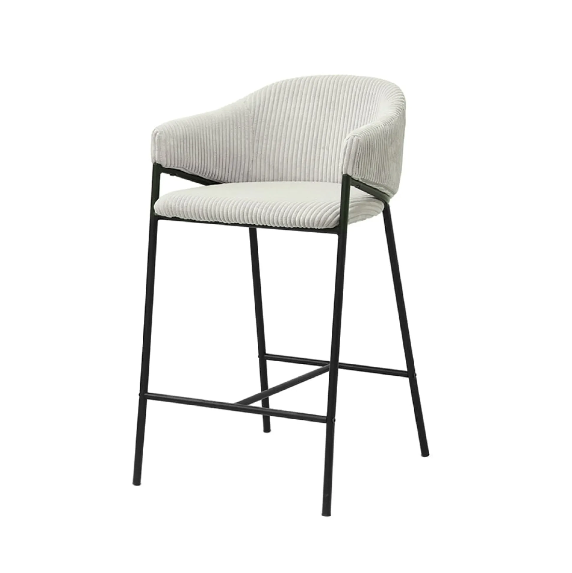 De Vieve barkruk combineert stijl en comfort in een modern ontwerp. Met een zithoogte van 66 cm is deze kruk ideaal voor gebruik aan je keukeneiland of bar. Het stevige metalen onderstel en de comfortabele stoffen zitting zorgen voor een fijne zitervaring, zelfs bij langere sessies. Bovendien bieden de armleuningen extra ondersteuning.
