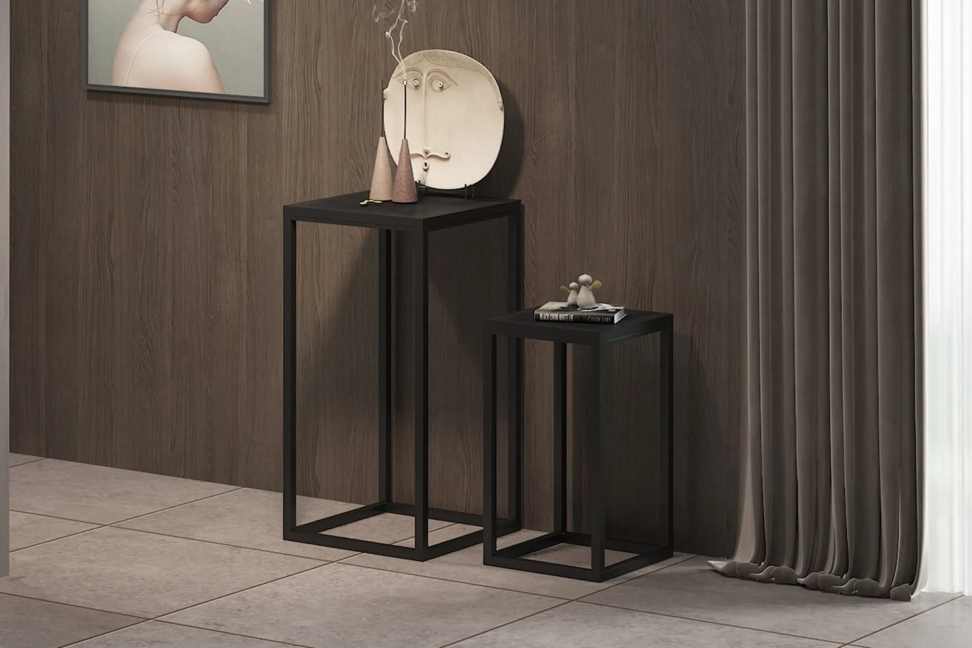 Deze stoere plantafel set heeft een industriële look door het gebruik van een exotisch houten blad en het zwart metalen onderstel. Door de verschillende afmetingen en hoogtes van de tafels staan de plantentafels mooi naast elkaar, maar kunnen ze ook goed apart van elkaar worden neergezet. Bovenop de tafels kunt u mooie planten kwijt zodat ze een welverdiende en opvallende plek krijgen binnen uw interieur. Bekijk ook de bijpassende elementen uit deze serie!