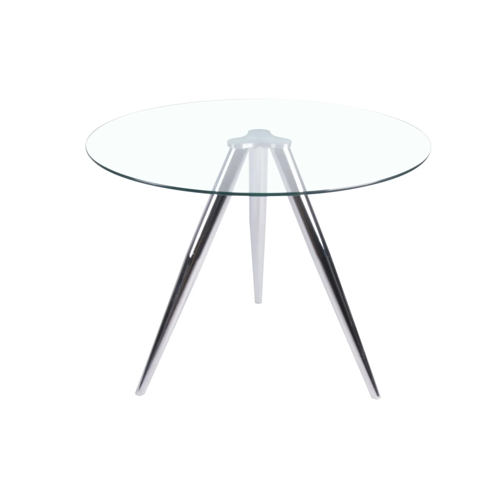 Een stijlvolle glazen eettafel met een modern ontwerp.