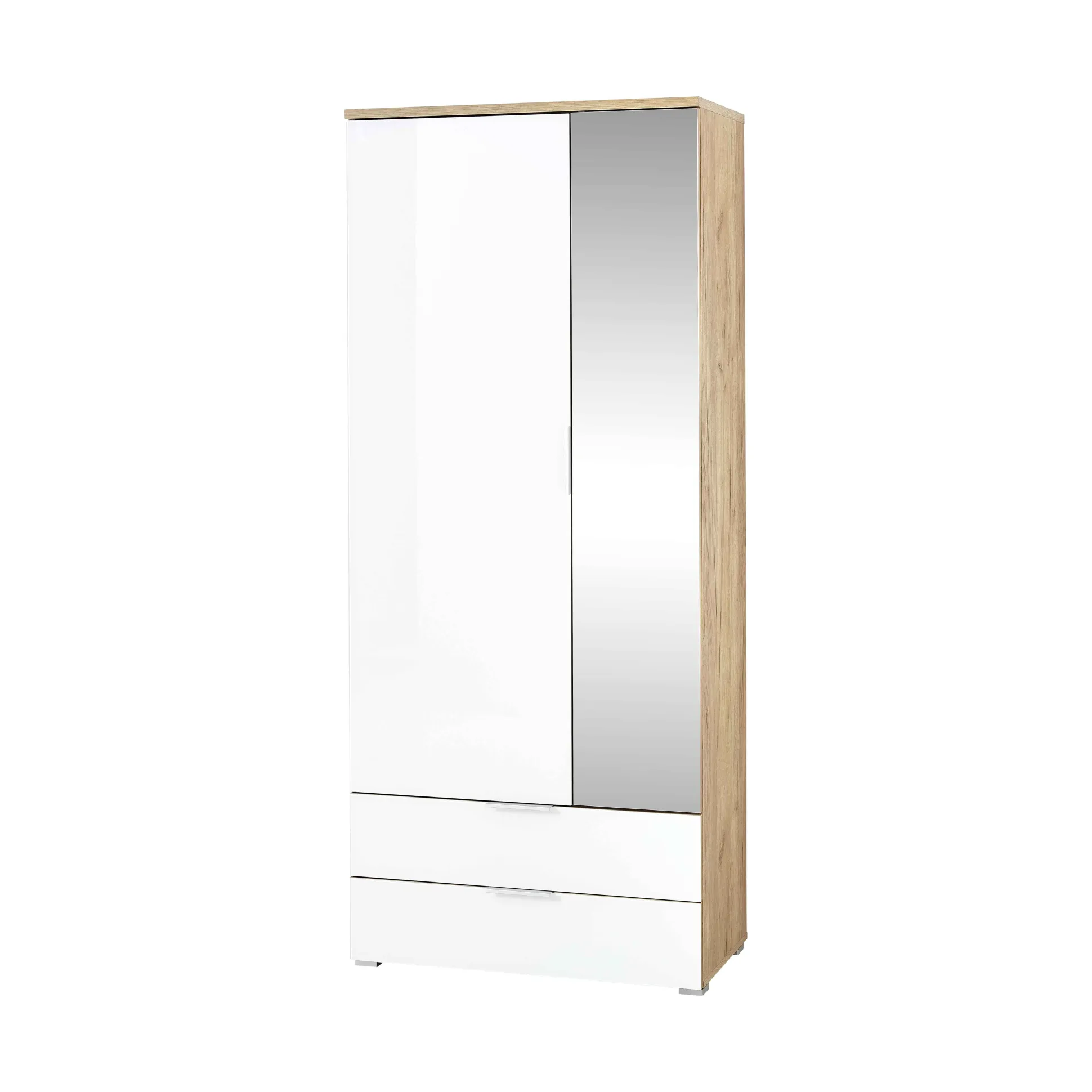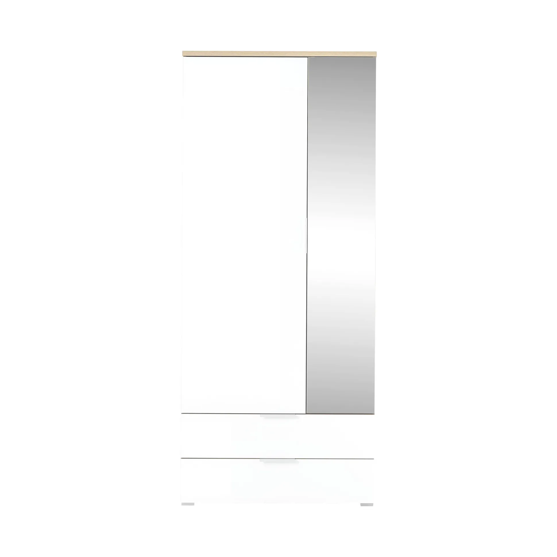 Met deze garderobekast ben je verzekerd van voldoende opbergruimte in je hal en door de spiegel kun je nog even snel bekijken hoe je eruitziet voor je de deur uitgaat! De kast is voorzien van 5 verstelbare legplanken en een gedeelte om jassen aan een kledinghanger op te hangen. Ook bevinden zich onderin nog 2 laden voor allerhande spullen zoals wanten, sjaals en petten! Leuk te combineren met de rest van deze serie!
