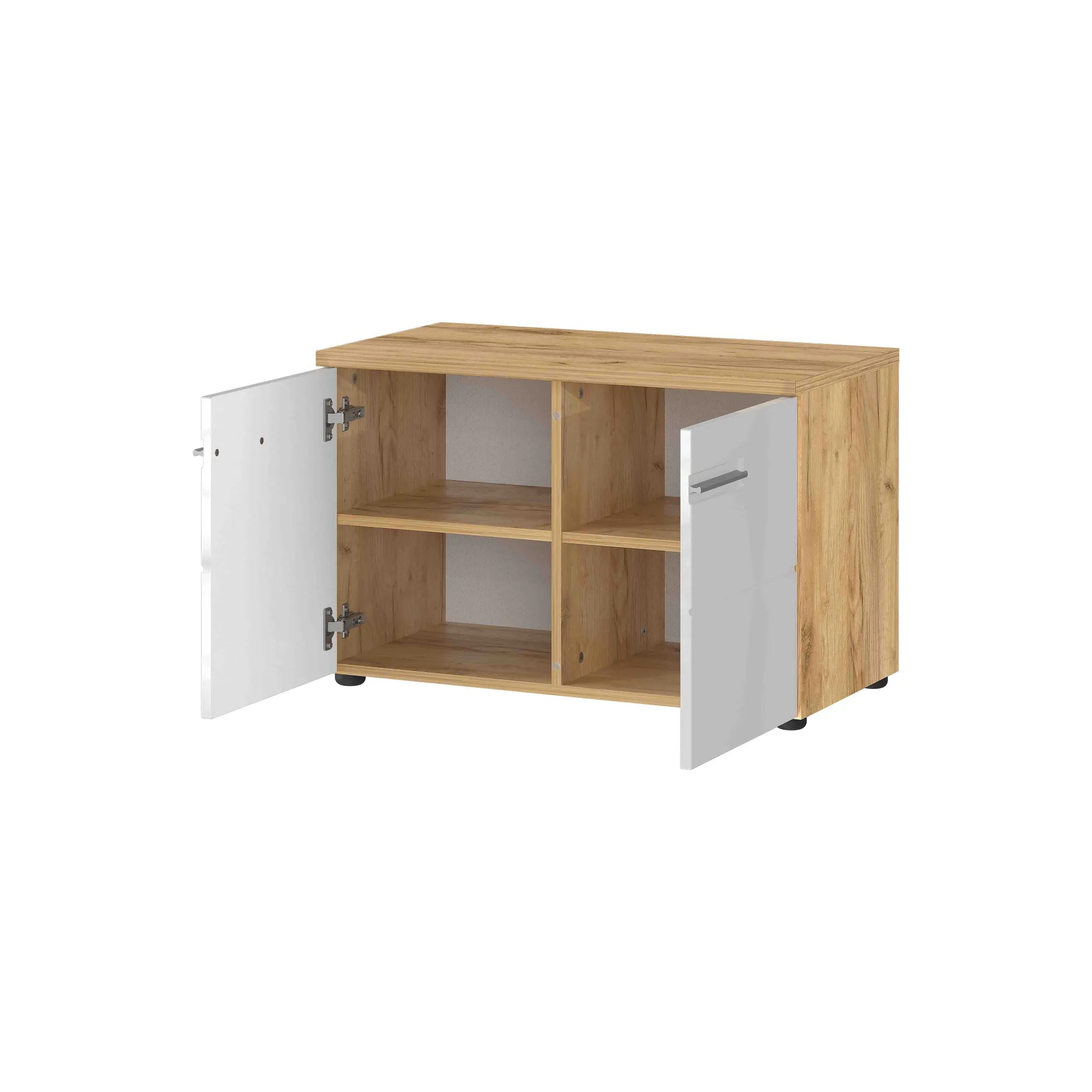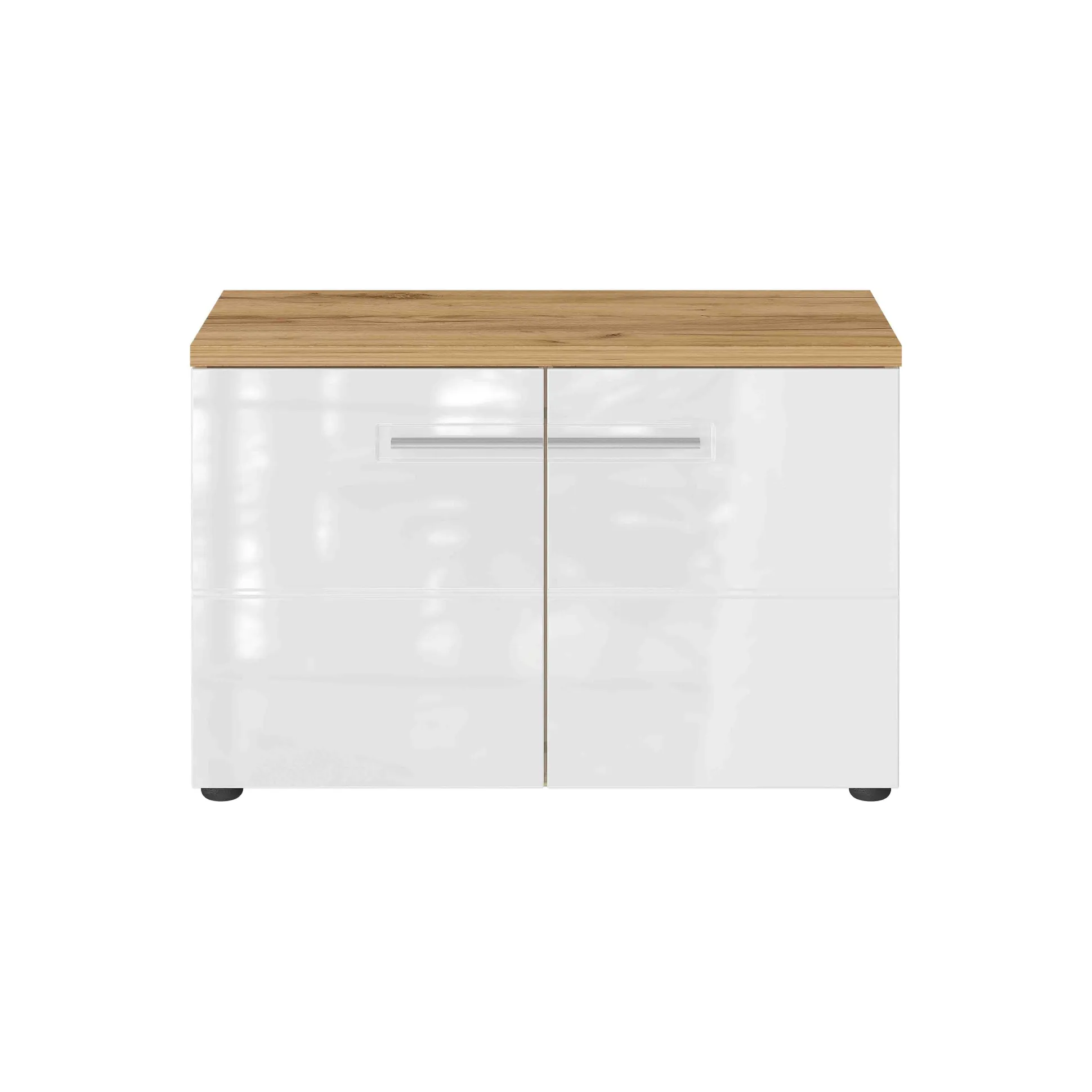 Stijlvolle halbank met voldoende opbergruimte voor ongeveer 8 paar schoenen. Zodra je de juiste schoenen hebt uitgekozen kun je deze gemakkelijk zittend aantrekken. Achter de deuren bevinden zich 2 verstelbare legplanken. De hoogglans MDF-fronten geven in combinatie met de kenmerkende groeven een warme uitstraling aan deze kast. Zitkussen is separaat bij te bestellen. Gemakkelijk te monteren door middel van de bijgeleverde montagehandleiding. Bekijk ook de andere producten uit deze serie!