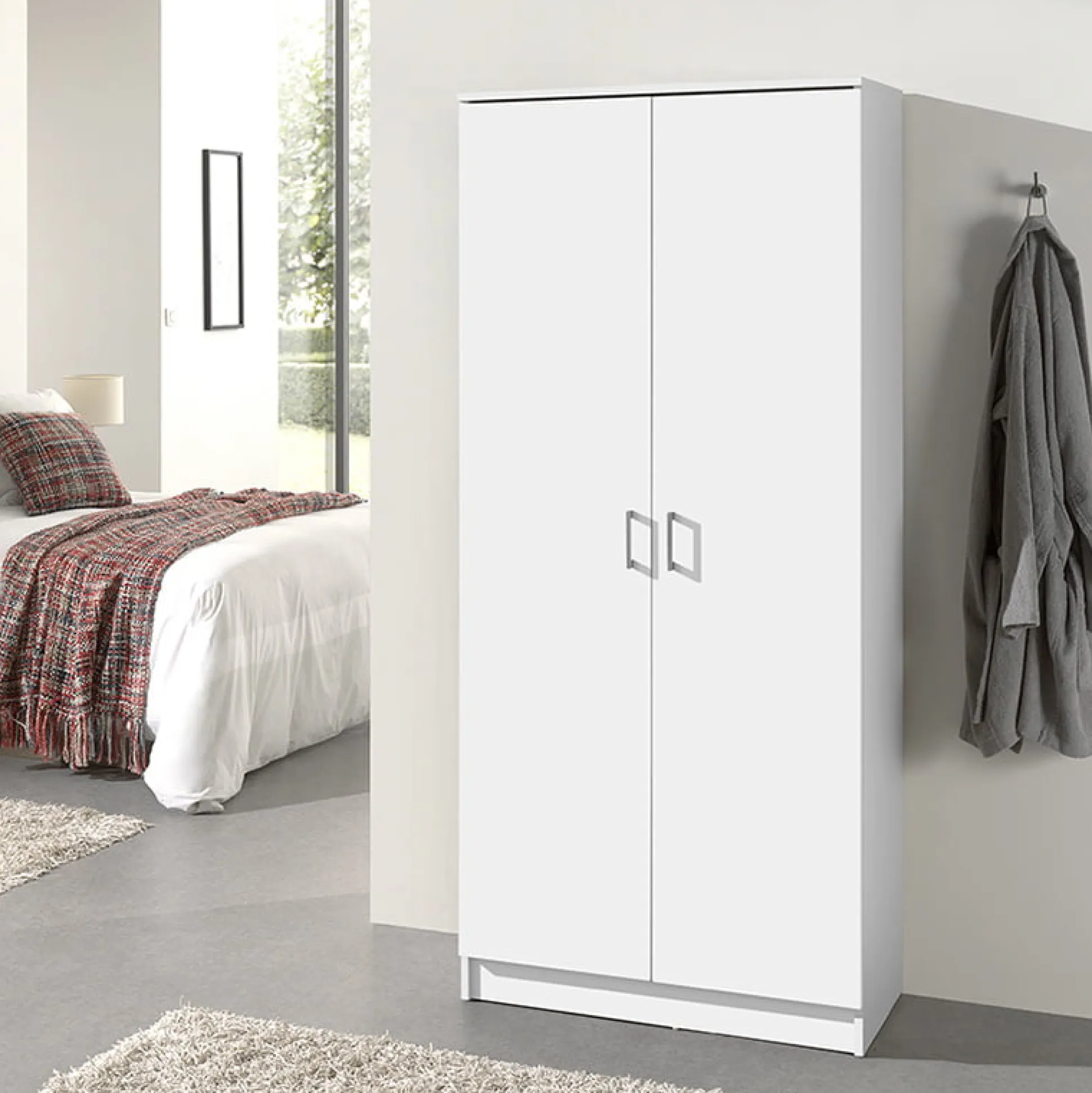 Deze handige en compacte kast biedt volop ruimte voor al je spullen, zowel toepasbaar in de slaapkamer als bijvoorbeeld je kantoor. Achter de openslaande deuren bevinden zich 4 legplanken. De kast is vervaardigd uit stevig plaatmateriaal, gemakkelijk te monteren en is door zijn eenvoud toepasbaar in elk interieur. De kast is verkrijgbaar in meerdere kleuren en afmetingen.