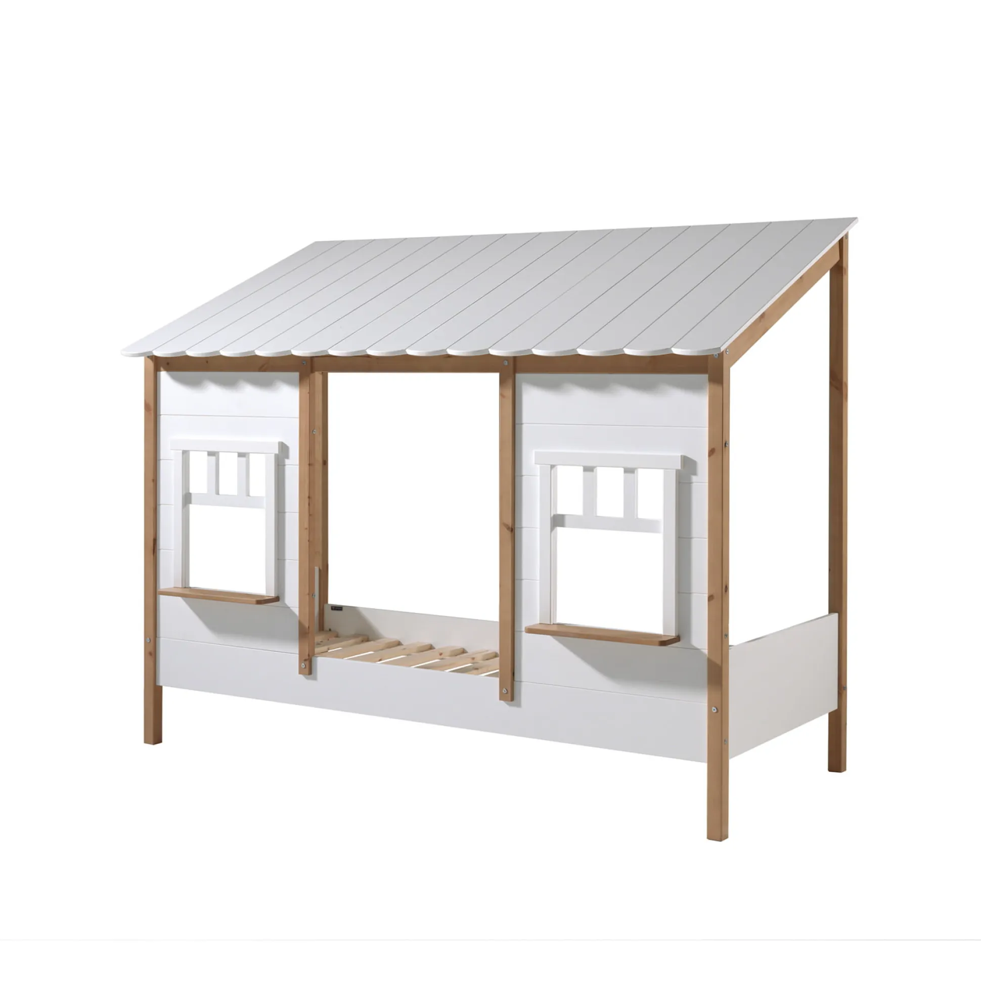 Met dit prachtige huisbed is je kinderkamer in één keer omgetoverd tot een knusse gezellige plek! Door het bed met de achterkant tegen een muur te plaatsen creëer je aan beide zijden een uitvalbeveiliging en is je kind verzekerd van een veilige nacht. Het bed is vervaardigd uit een combinatie van MDF en massief grenen en is afgelakt in het wit. Dit bed wordt geleverd inclusief lattenbodem.