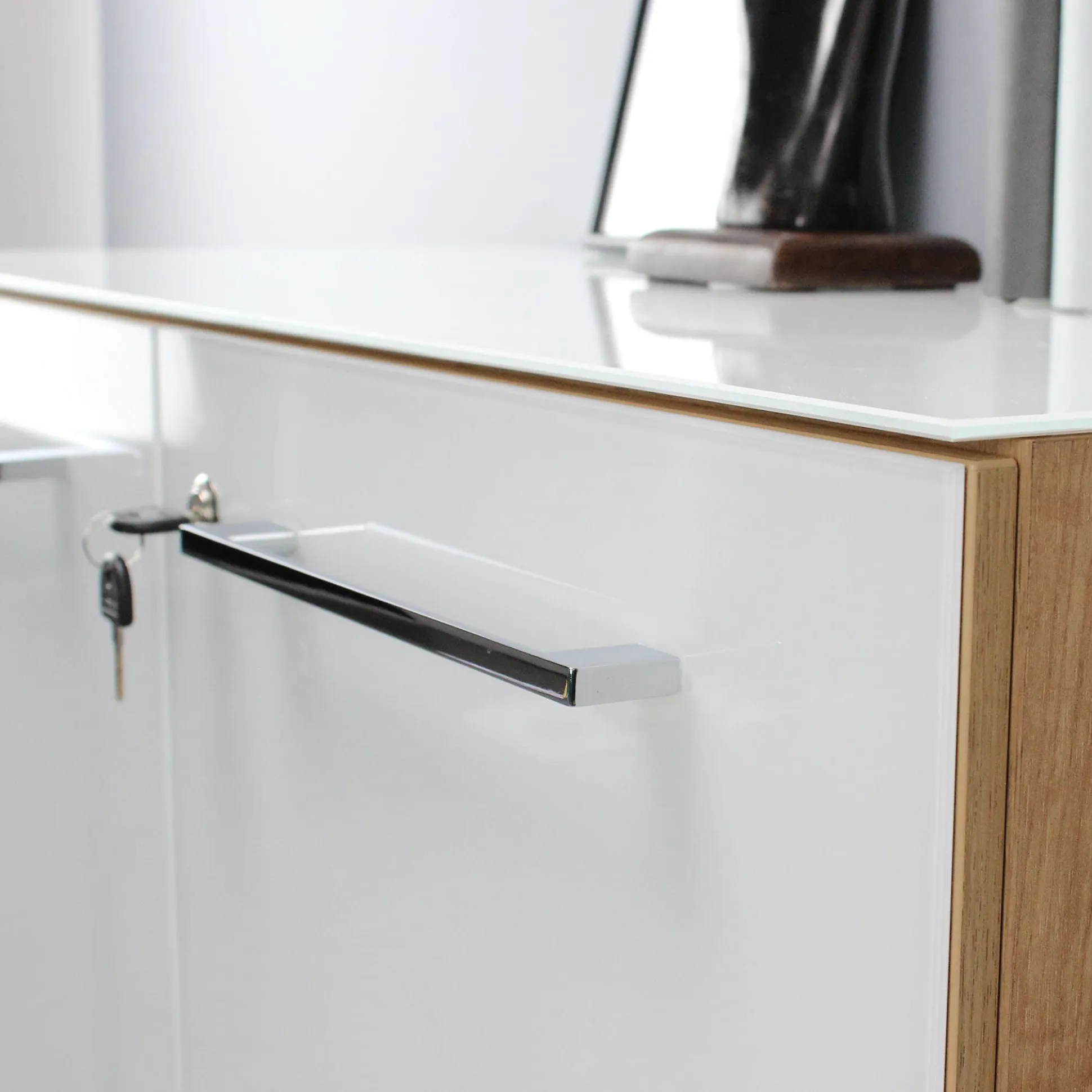 Handige kantoorkast op dressette hoogte met 3 opbergvakken. De kast is te combineren met de open Kantoorkast Destin-O zodat je efficiënte combinaties kunt maken. De scharnieren hebben ingebouwde demping voor het geruisloos sluiten van de deuren.
