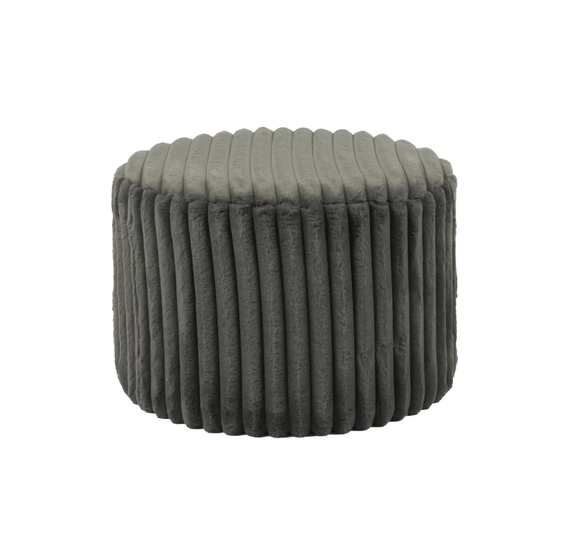 Deze stijlvolle donkergrijze kruk in brede riblook geeft je interieur een moderne en elegante touch. De zachte faux fur stof biedt niet alleen een comfortabele zitervaring, maar voegt ook een luxe textuur toe.