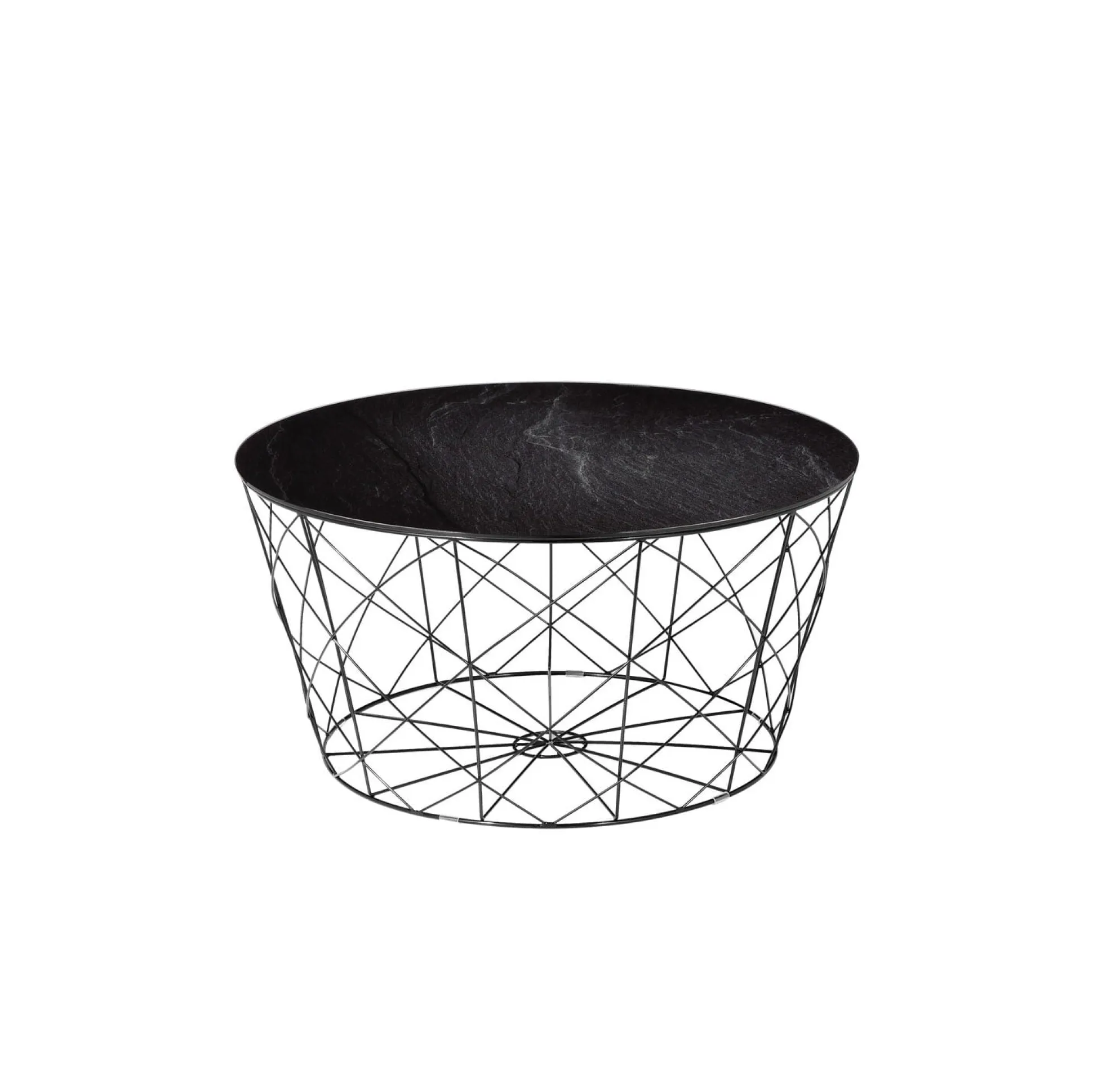 Het frame van deze salontafel is gemaakt van een stevige metaaldraad, het blad van deze salontafel is 6mm dik veligheidsglas met een marmeren fineer.