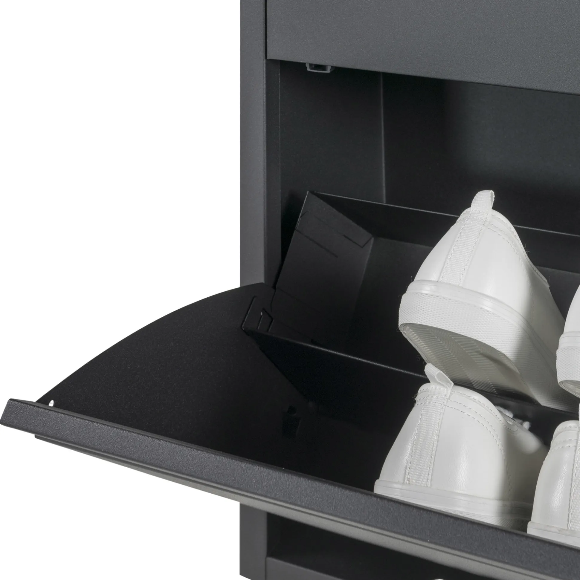 Deze trendy schoenenkast uit de collectie Oscar is geproduceerd van hoogwaardig roestvrijstaal en is afgewerkt met een mooie poedercoating. U kunt de kast door middel van twee kleppen netjes afsluiten. Bij deze kast is er gekozen voor dubbele vakken zodat er nog meer plaats is om uw schoenen op te bergen. In de kast is namelijk wel plaats voor 16 paar schoenen. De schoenenkast is verkrijgbaar in de kleuren zwart en groen.