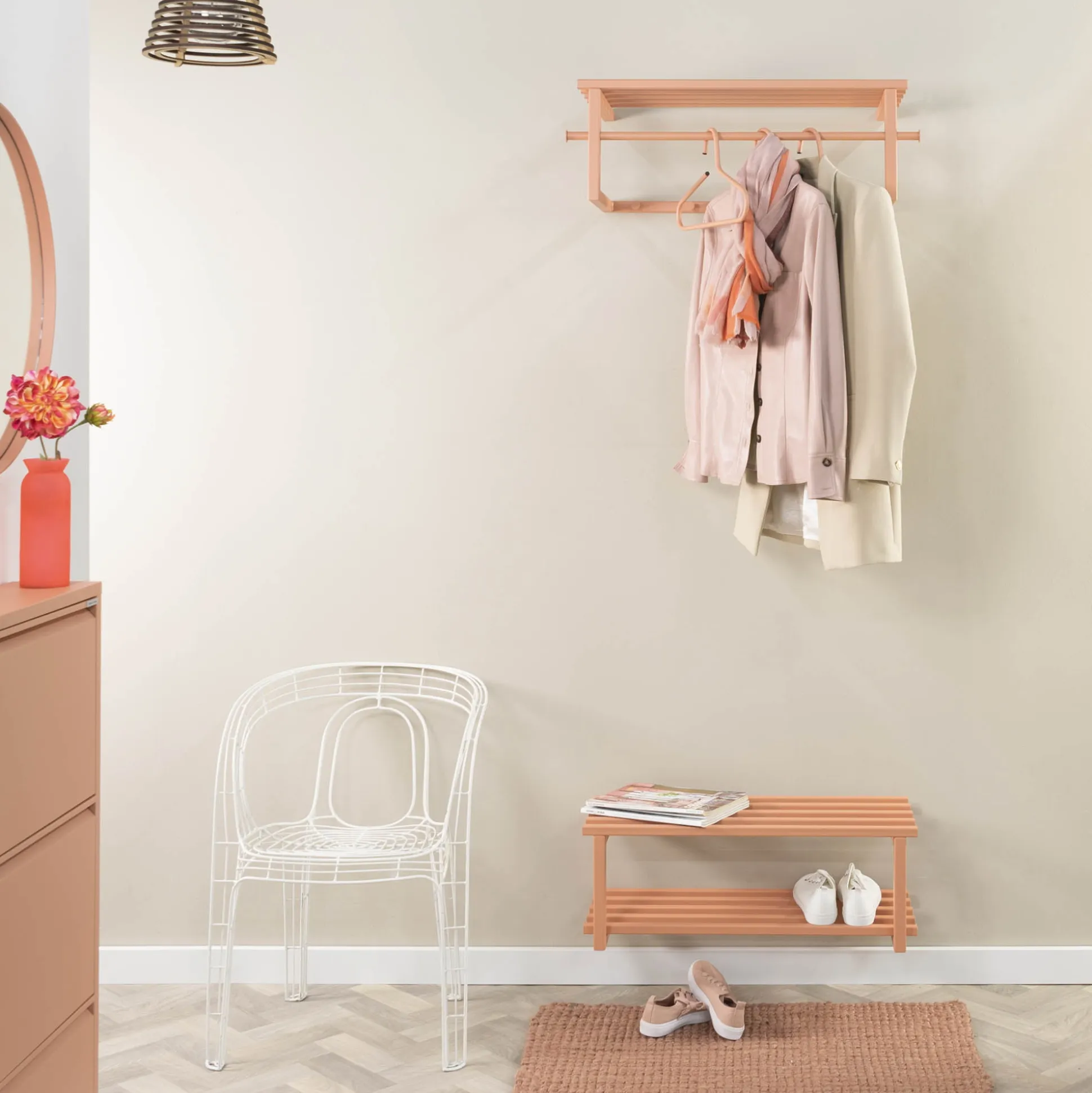 Met dit degelijke schoenenrek ben je verzekerd van een opgeruimde hal. Het schoenenrek is vervaardigd van een stevig staal en afgewerkt met een sterke poeder coating. Je bergt gemakkelijk 6 paar schoenen op in dit rek en het is leuk te combineren met de andere elementen uit deze collectie!