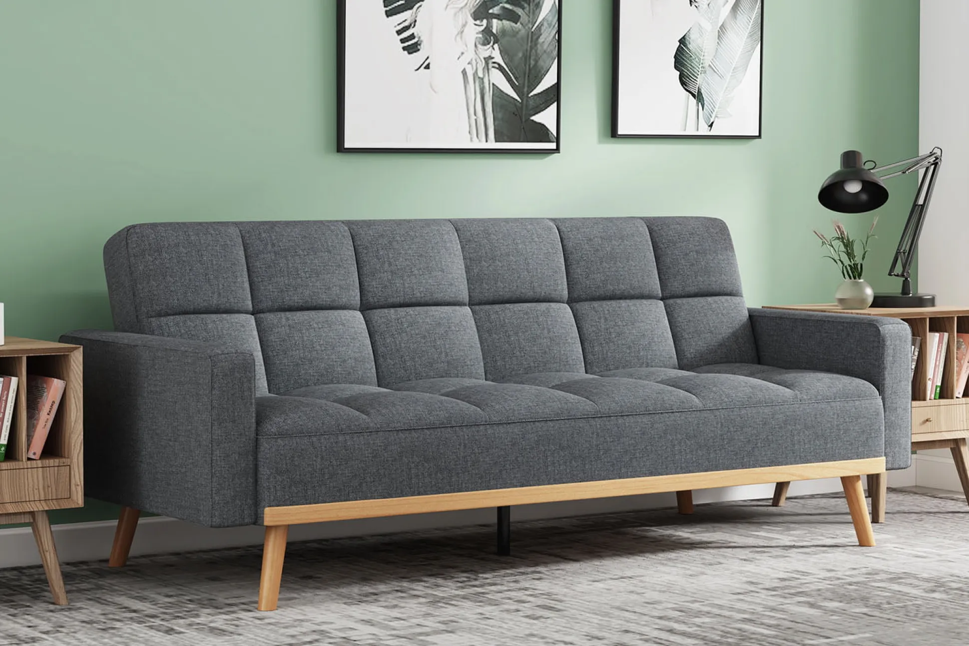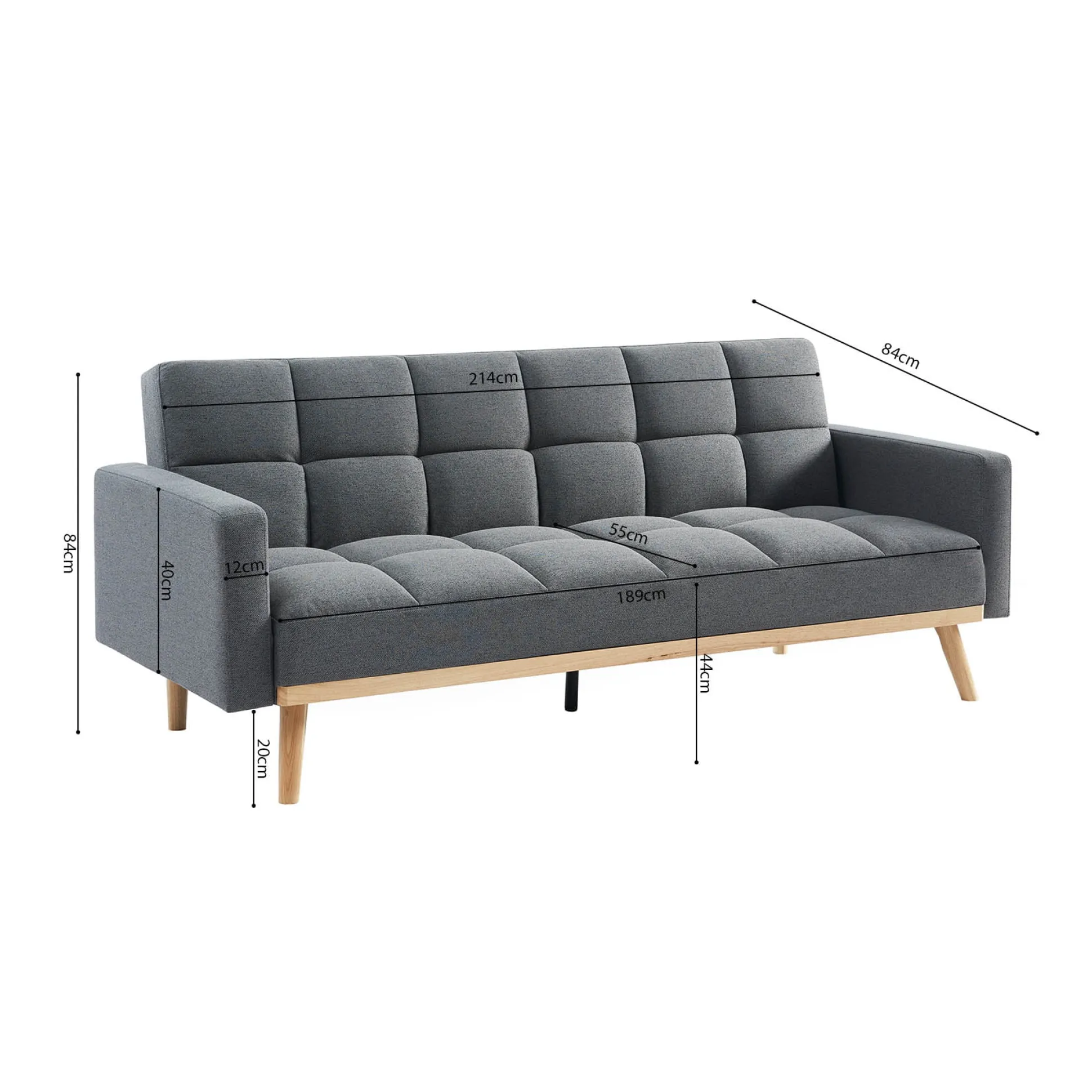 Deze stijlvolle bank is een aanwinst voor in elke woon- of slaapkamer, je tovert hem eenvoudig om tot een slaapbank voor een extra plek voor je gast! De bank heeft een zithoogte van 44 cm en een zitdiepte van 55 cm. De bank heeft een houten eucalyptus houten frame en een goed zit- en ligcomfort door zijn koud schuim matras.