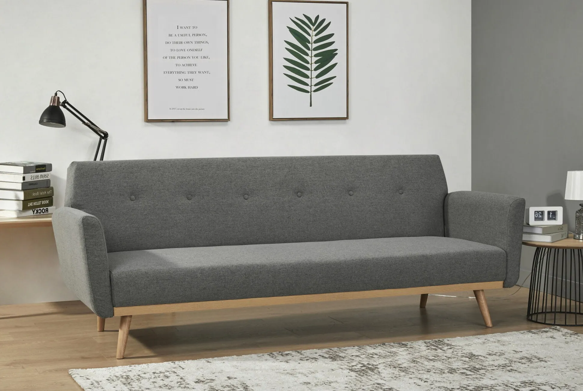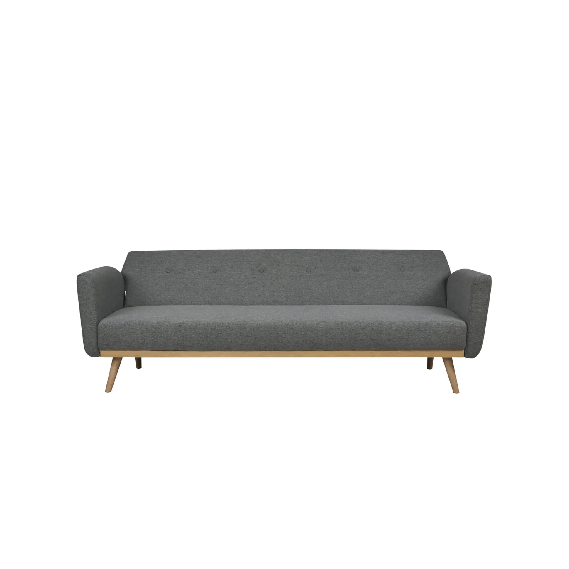 Deze 3-zits slaapbank is vervaardigd uit een fijngeweven stof, de poten zijn van massief hout. De slaapbank heeft een goed zit- en ligcomfort, deze is gemakkelijk te verstellen. De zithoogte is 40 centimeter en de zitdiepte 58 centimeter. Uitgeklapt is het liggebied 190×111 centimeter. Gemakkelijk te monteren doormiddel van bijgeleverde montagehandleiding. Verkrijgbaar in verschillende kleuren.