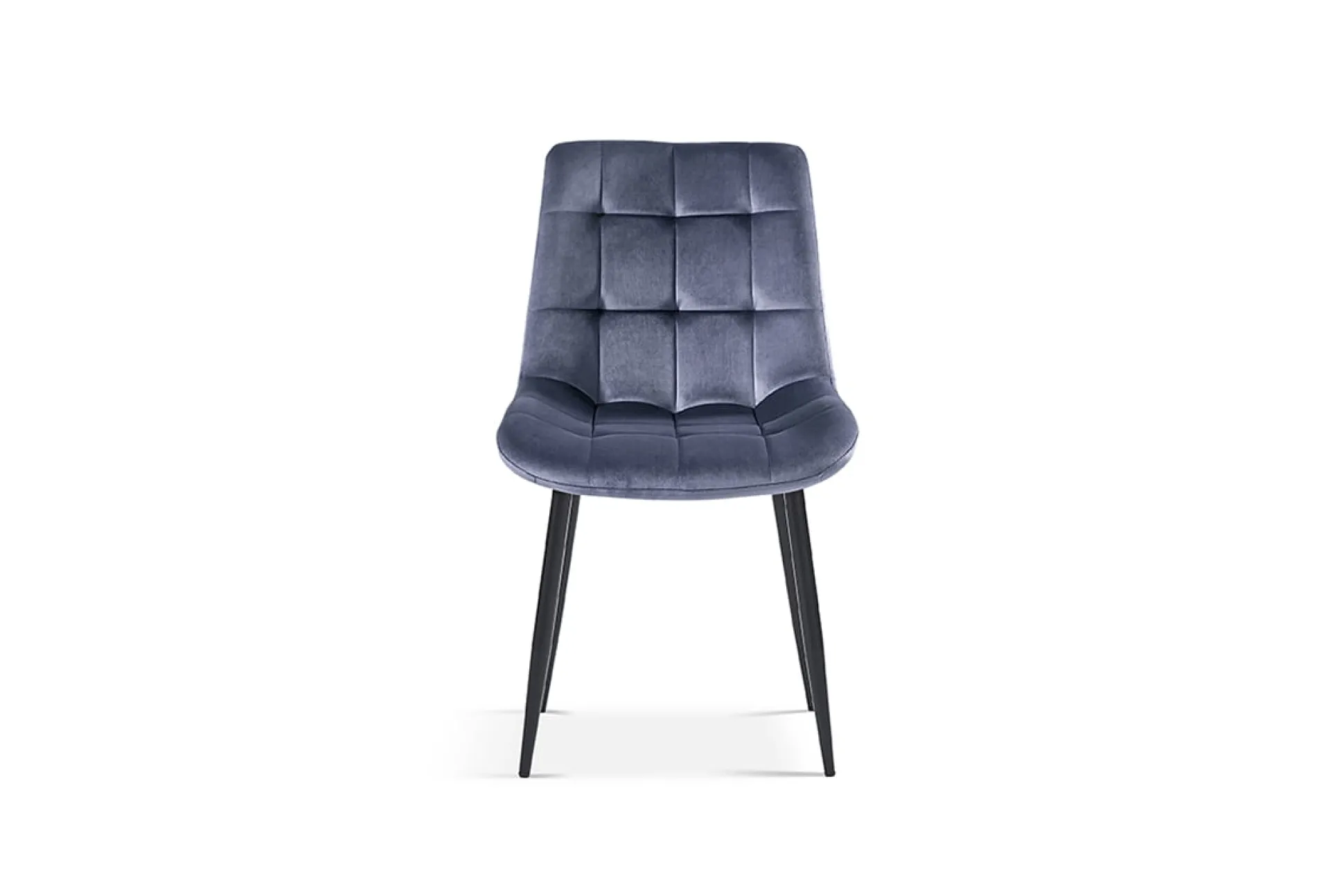 Deze moderne comfortabele stoel is bekleed met een zachte velours stof. Het blokpatroon in combinatie met zijn zwarte metalen poten geeft deze eetkamerstoel een leuke extra dimensie. De stoel heeft een zithoogte van 47 cm en een zitdiepte van 44 cm. Verkrijgbaar in meerdere kleuren.