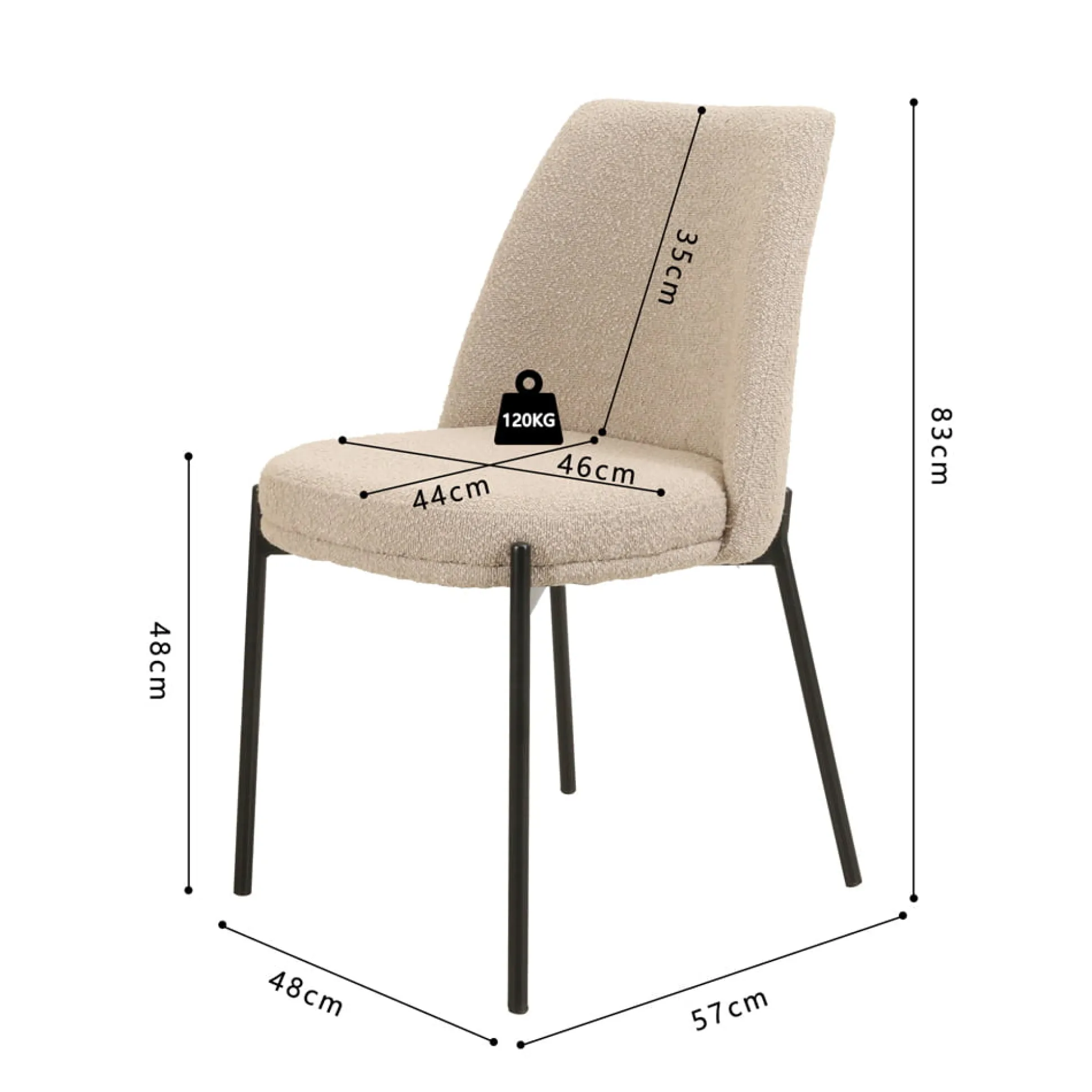 Deze set van 2 Stoelen Lylou is een fantastische toevoeging aan je interieur! Met een breedte van 48 cm, hoogte van 83 cm en diepte van 57 cm zijn deze stoelen perfect voor aan de eettafel of als stijlvolle zitplaatsen in de woonkamer. Het stevige metalen onderstel zorgt voor een goede stabiliteit, terwijl de comfortabele stoffen zitting je een fijne plek biedt om te ontspannen. De zithoogte van 48 cm en zitdiepte van 44 cm maken deze stoelen ideaal voor elk moment.