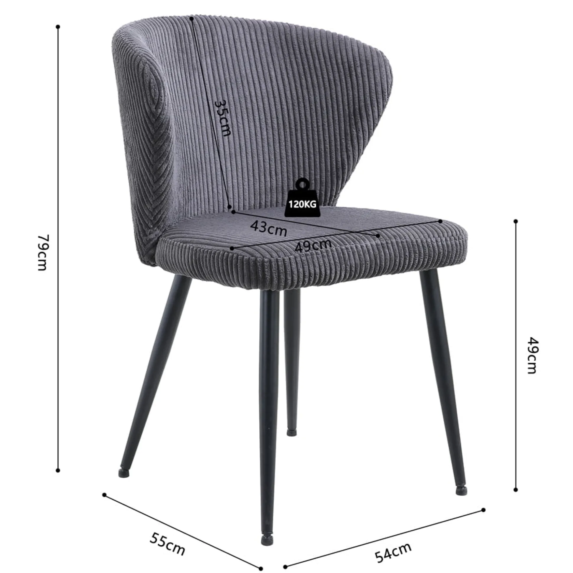 Maak kennis met de Stoel Marthe, een stijlvolle set van 2 stoelen die perfect passen in elk interieur. Met een breedte van 54 cm, een hoogte van 79 cm en een diepte van 55 cm, bieden deze stoelen een ideale zitervaring. Het stevige metalen onderstel in combinatie met de ribstof zitting zorgt voor zowel comfort als een luxe uitstraling.