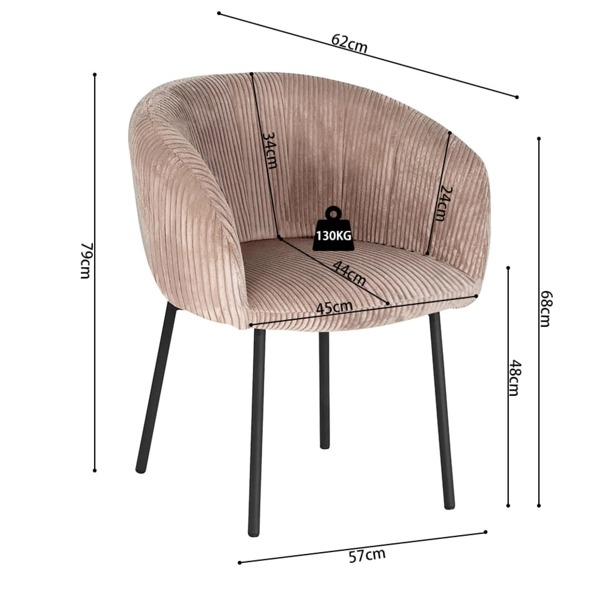 Ontdek de Stoel Pia, een trendy set van 2 stoelen die elke ruimte opfleurt. Met een breedte van 57 cm, hoogte van 79 cm en diepte van 62 cm, bieden deze stoelen volop comfort. Het stevige metalen onderstel en de ribstof zitting zorgen voor een moderne uitstraling en lange levensduur.