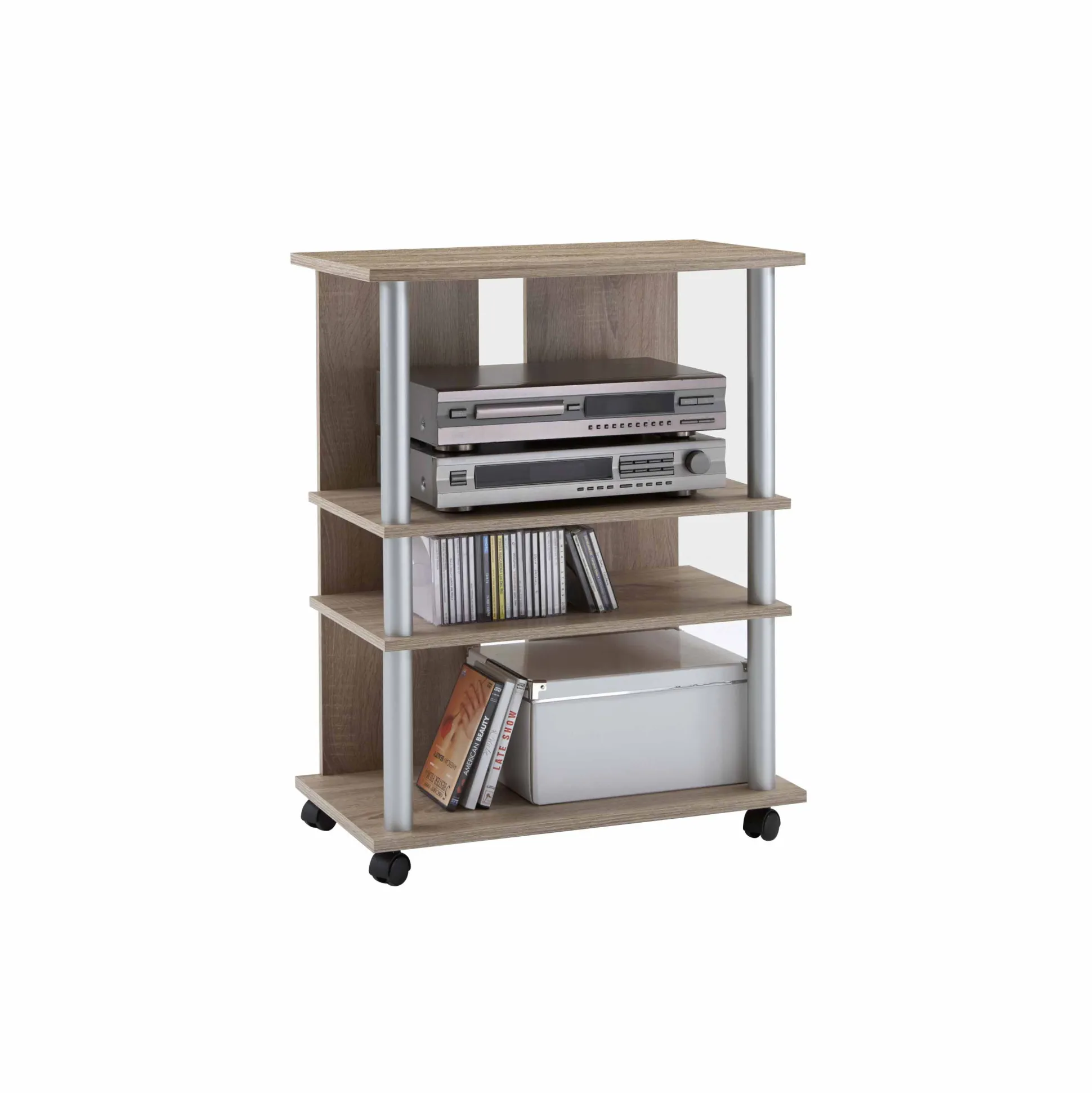 Handig tv-meubel met meerdere lagen voor het uitstallen van apparatuur of het opbergen van accessoires. Dit tv-meubel is vervaardigd uit een stevige spaanplaat en afgewerkt met een sterke melamine. Eenvoudig te monteren door middel van de bijgeleverde montagehandleiding.