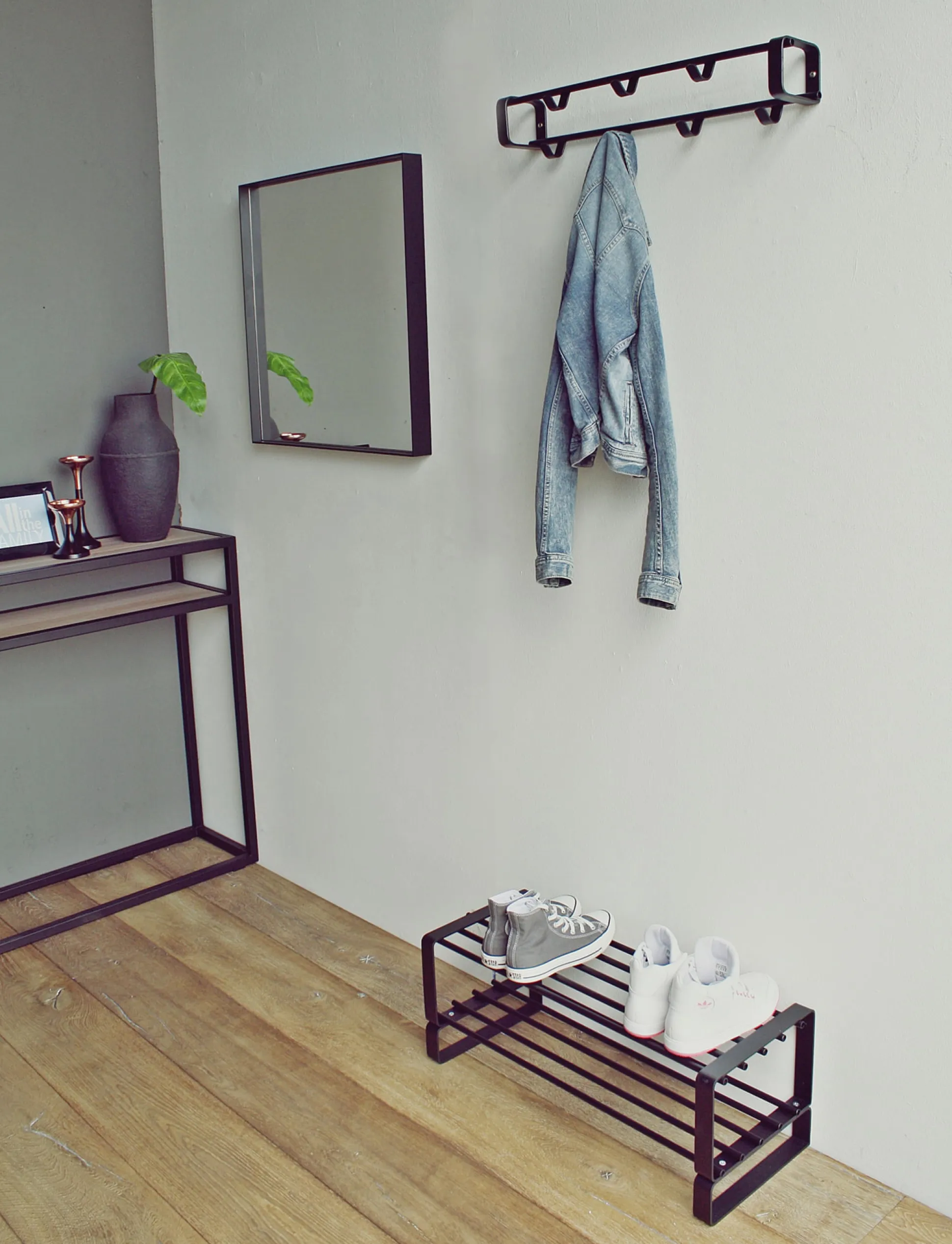 De kapstok is volledig gemaakt van hoogwaardig metaal en afgewerkt in een sterke zwarte fijnstructuur epoxy poedercoat. Aan de in totaal 7 kapstokhaken kunnen heel wat jassen hangen.