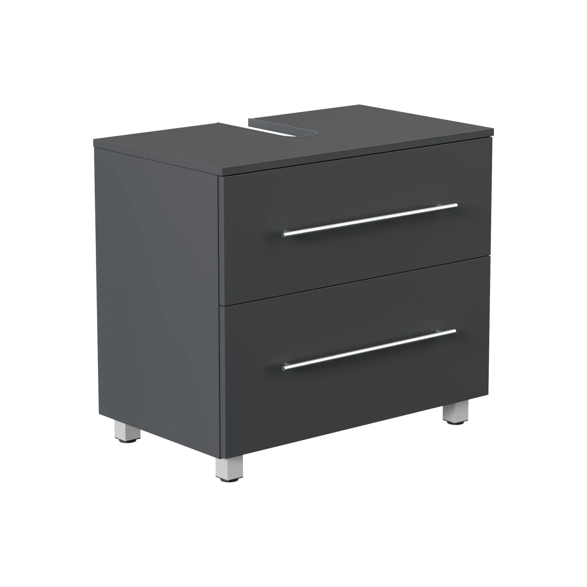 De wastafelkast Glasgow Grafiet 70 cm biedt een strakke en eigentijdse uitstraling voor uw badkamer. Dit in Duitsland ontworpen meubel is gemaakt van hoogwaardig spaanplaat en afgewerkt met een matte grafiet coating, waardoor het zowel stijlvol als onderhoudsvriendelijk is. Met een breedte van 70 cm, een hoogte van 63 cm en een diepte van 41,6 cm biedt de kast voldoende ruimte voor al uw badkamerbenodigdheden, terwijl de soft-close mechanismen zorgen voor een rustige werking.