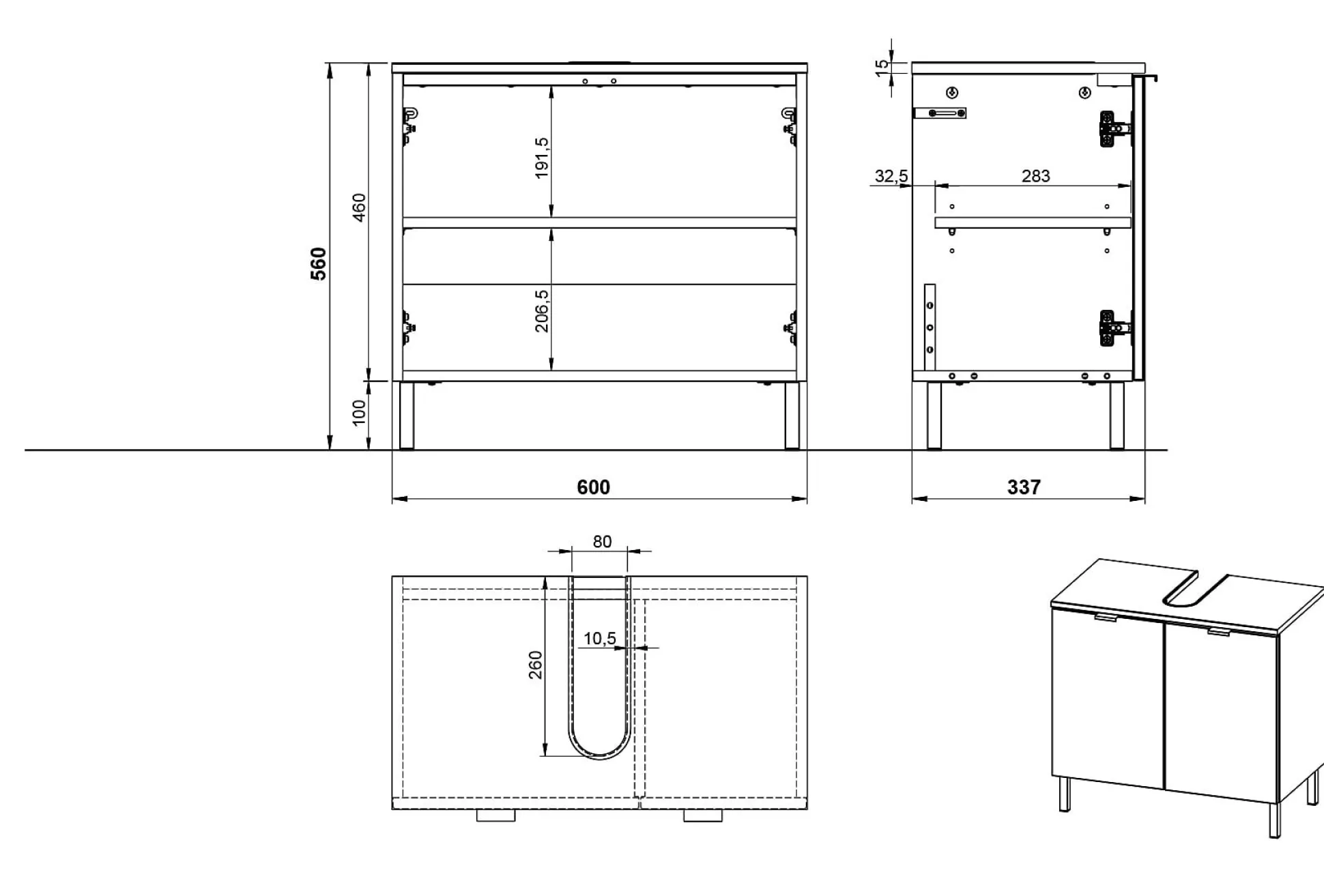 - Verstelbare plank en sifonuitsparing voor optimaal gebruik