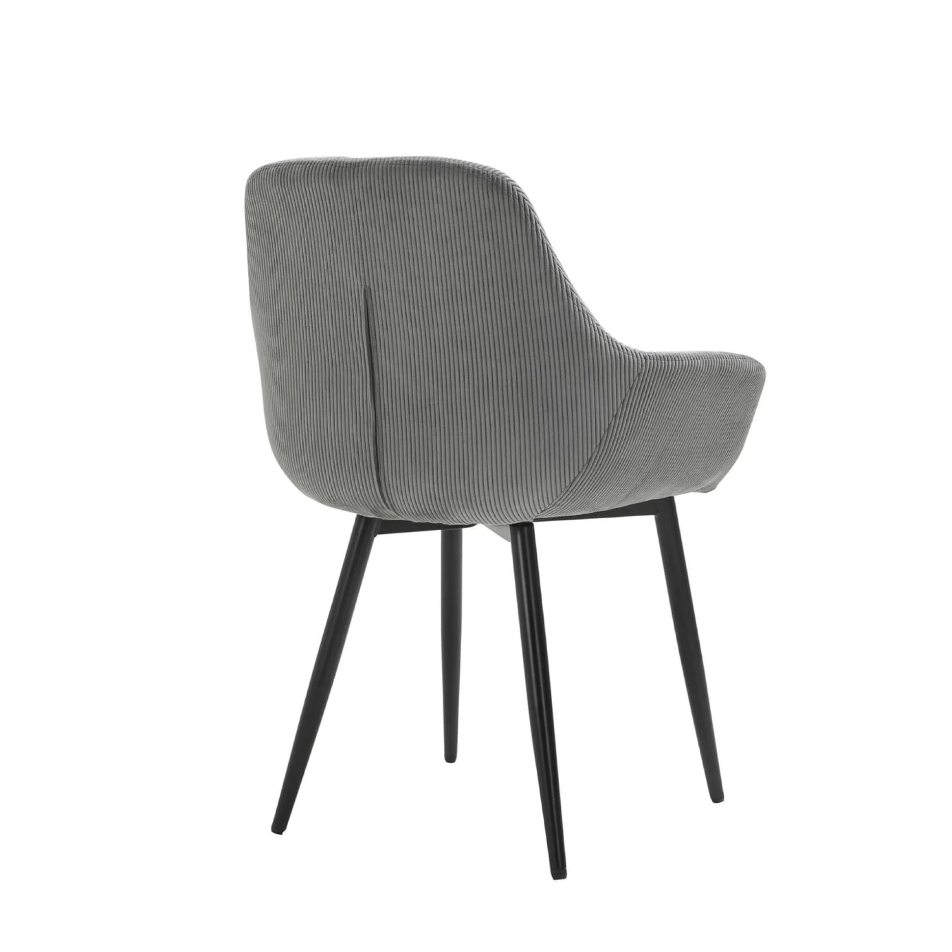 Breng een stijlvolle en moderne sfeer in je interieur met deze set van 2 armstoelen in een chique grijze riblook. De stoelen hebben stevige, mat zwart poedergecoate poten die zorgen voor een strakke en tijdloze uitstraling.