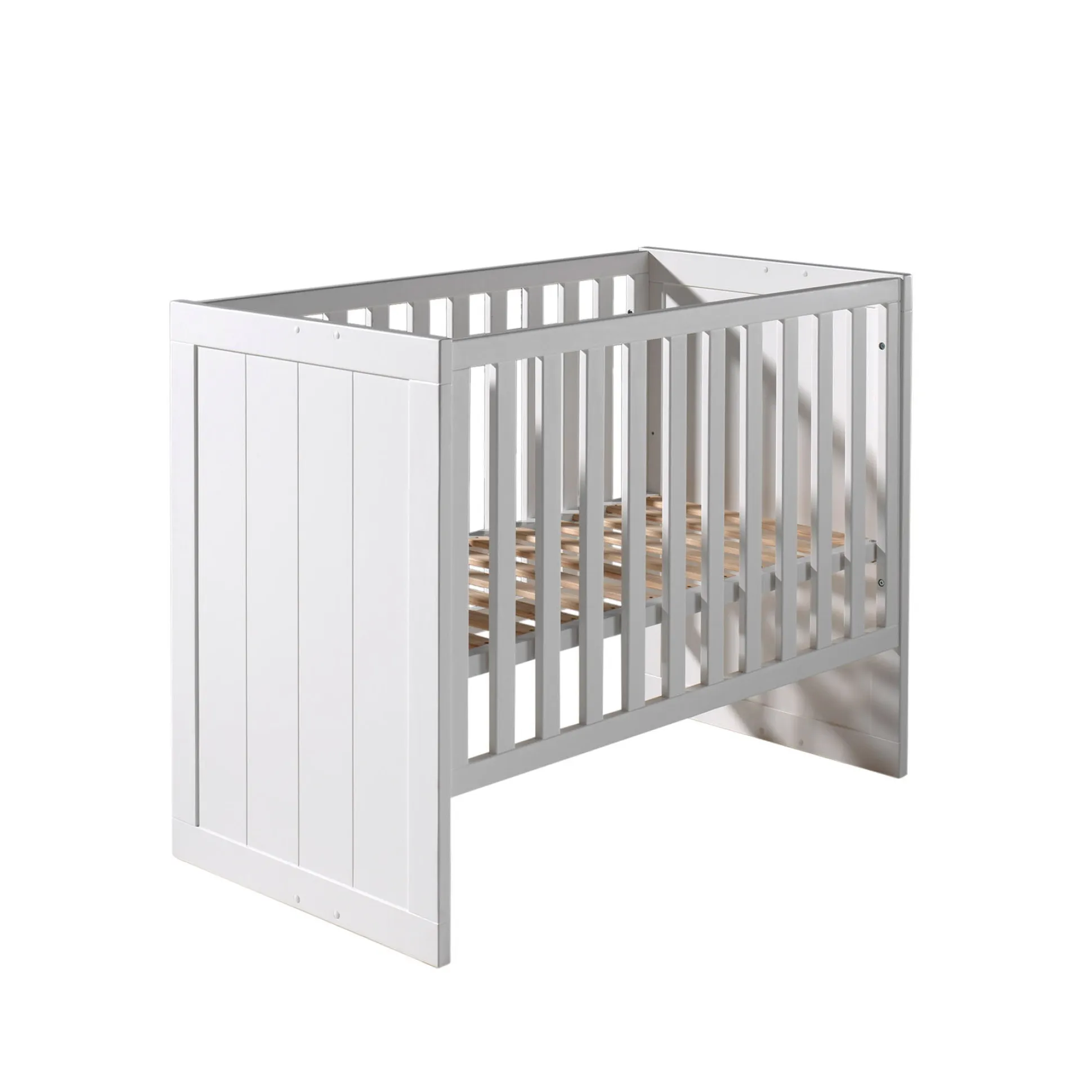 Met dit robuuste babybed ben je verzekerd van een veilige nachtrust voor je kind. Het bed is vervaardigd uit 18 MM dik MDF en is afgewerkt in een witte lak. De lattenbodem is verstelbaar in 3 hoogtes en wordt meegeleverd. Bekijk ook de bijpassende meubels uit deze serie!