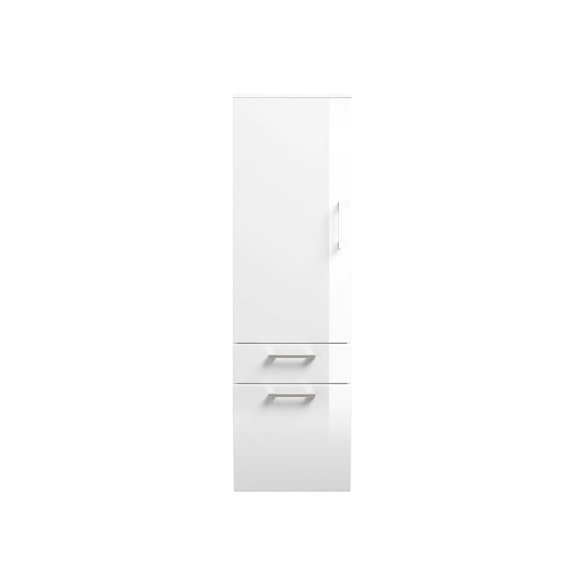 Deze stijlvolle badkamerkast heeft hoogglans spaanplaat-fronten gecombineerd met metalen hangrepen. Geruisloze sluiting van deuren, kleppen en lade dankzij het soft-close systeem. Gemakkelijk te plaatsen naast het bad meubel voor extra opbergruimte. Achter de deur bevinden zich 2 verstelbare legplanken. Door zijn melamine afwerking is deze kast beter schoon te houden en langer beschermd tegen stof en vuil. Gemakkelijk te monteren door middel van bijgeleverde montagehandleiding. Bekijk ook de andere elementen uit deze serie!