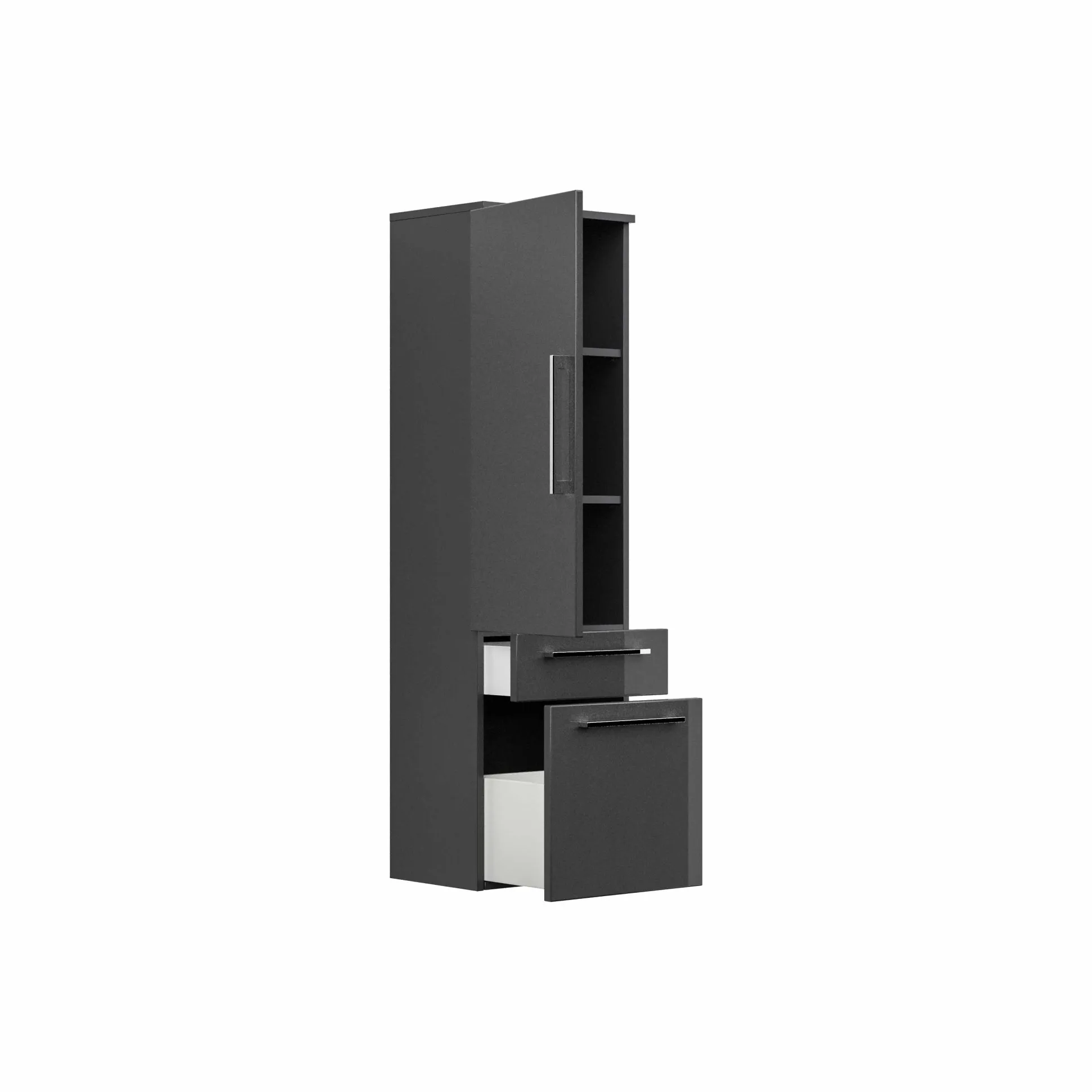 Deze stijlvolle badkamerkast heeft hoogglans spaanplaat-fronten gecombineerd met metalen hangrepen. Geruisloze sluiting van deuren en laden dankzij het soft-close systeem. Gemakkelijk te plaatsen naast het bad meubel voor extra opbergruimte. Door zijn melamine afwerking is deze kast beter schoon te houden en langer beschermd tegen stof en vuil. Gemakkelijk te monteren door middel van bijgeleverde montagehandleiding. Bekijk ook de andere elementen uit deze serie!