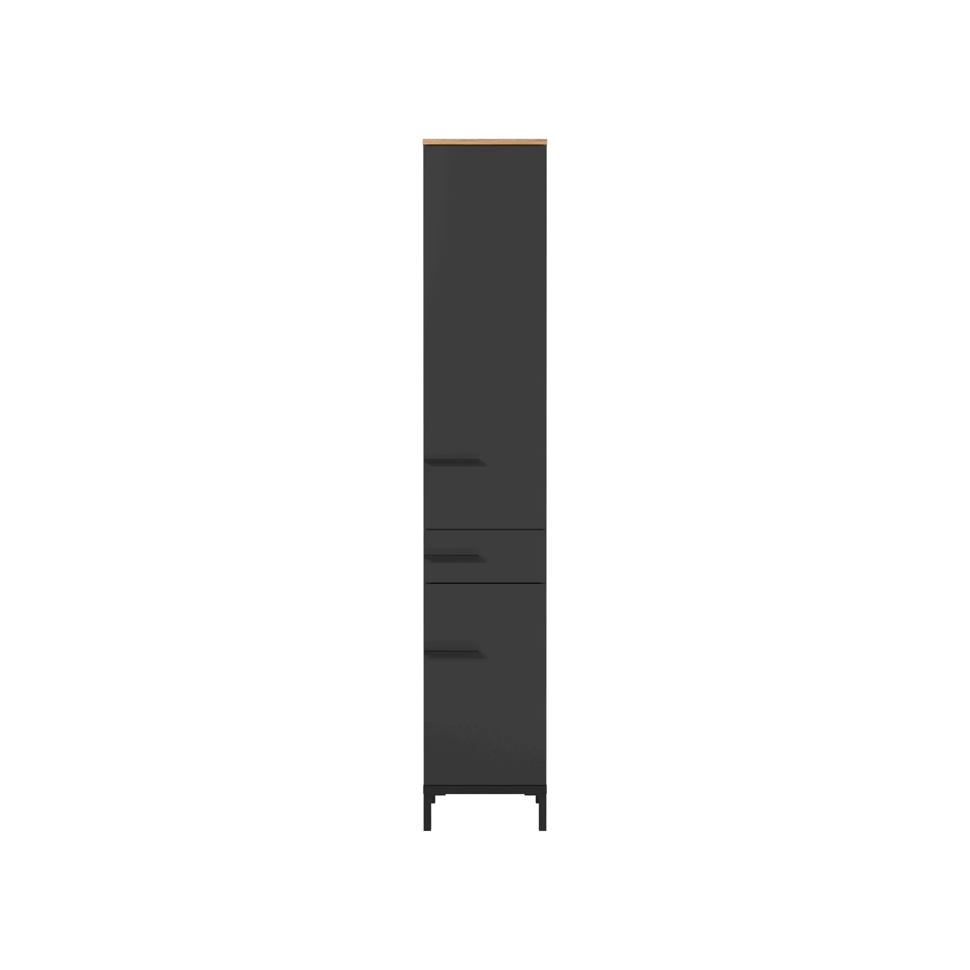 Deze stijlvolle badkamerkast vindt gemakkelijk zijn plaats. Voldoende opbergruimte achter de deuren op de 3 verstelbare legplanken. Zwart metalen handvatten en pootjes in combinatie met geruisloos sluitende deuren maken dit meubelstuk helemaal af. Geproduceerd in Duitsland, dit staat voor degelijke kwaliteit en een lange levensduur. Gemakkelijk te monteren doormiddel van de meegeleverde montagehandleiding. Bekijk ook de andere elementen uit deze badkamerserie!