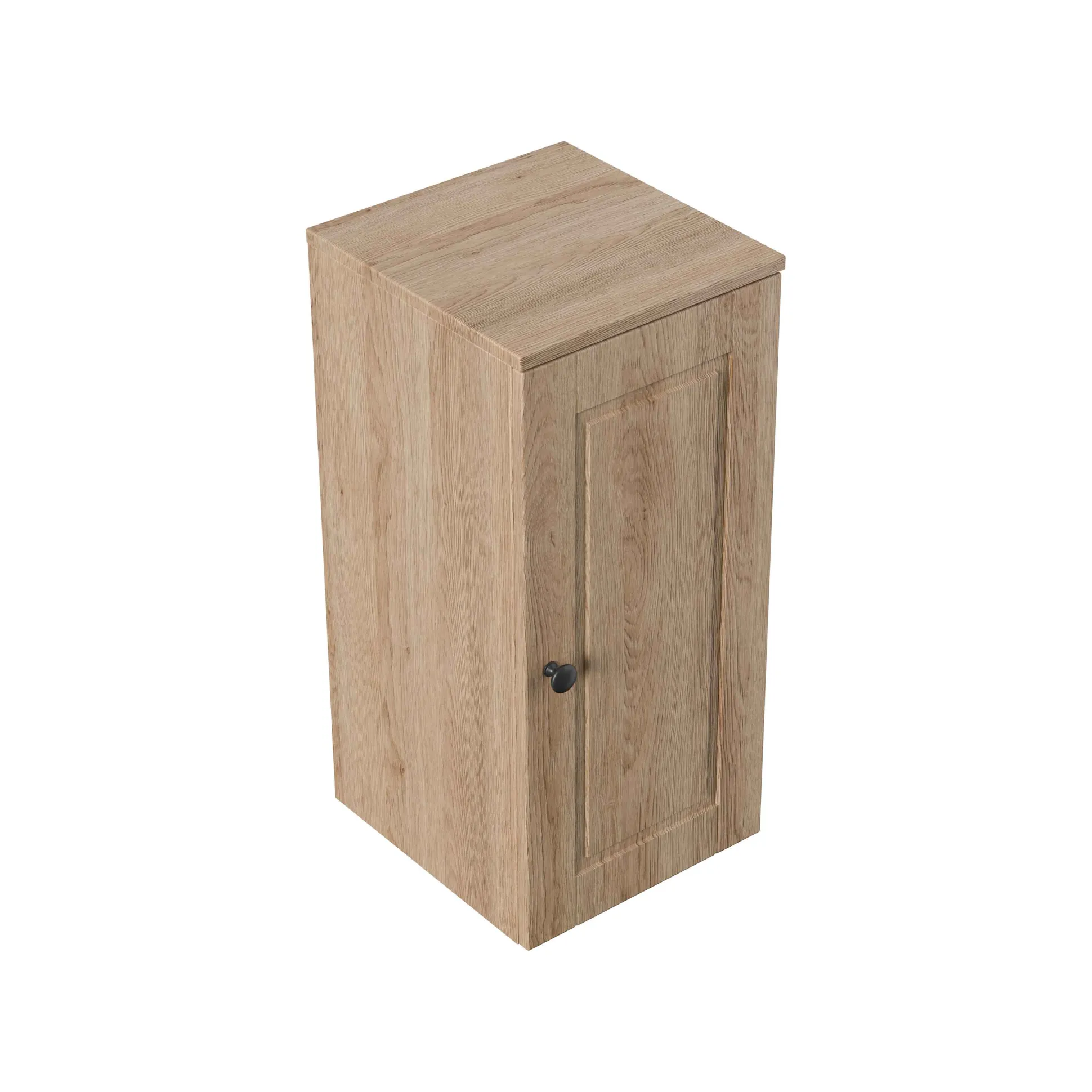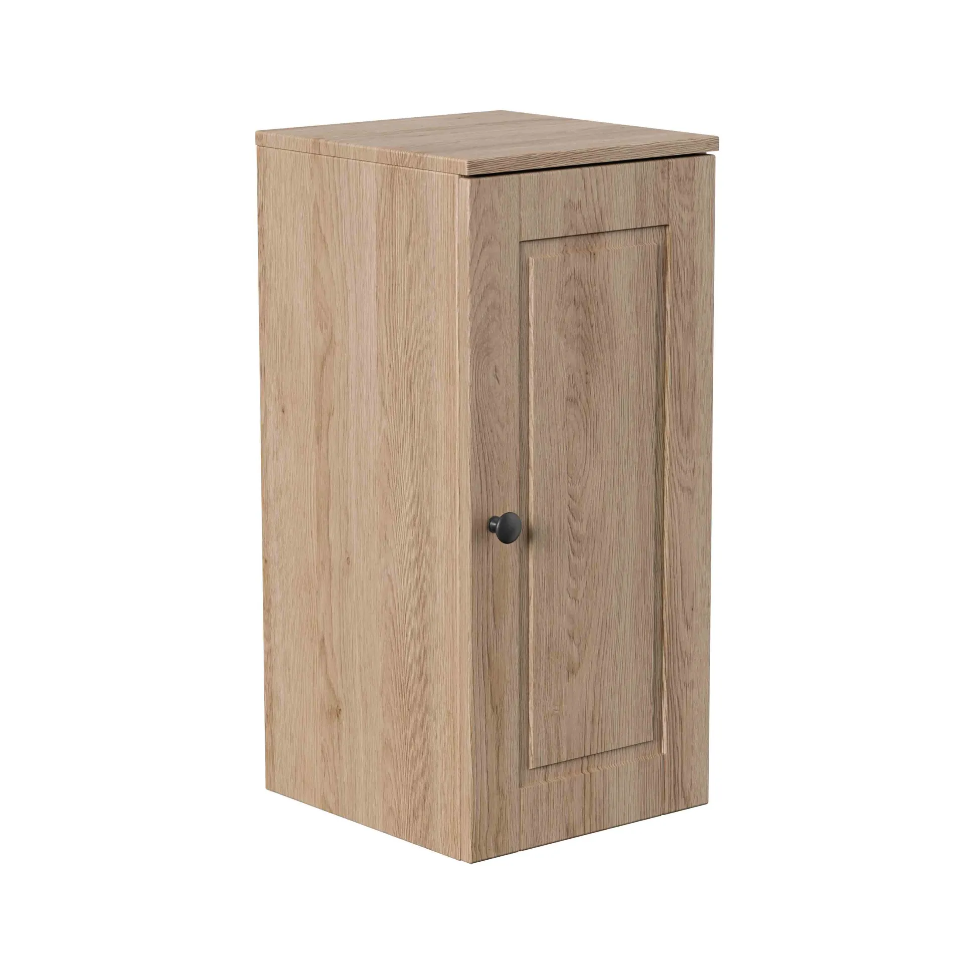 Deze hoge en landelijke design opbergkast heeft 5 opbergplanken om spulletjes of handdoeken in op te bergen en kan worden gesloten met een deur met soft-close systeem. Het is mogelijk om de aanslag links of rechts op de deur te monteren. De handgreep is verchroomd van hoogwaardig RVS en geeft de kast een landelijke look. De kast is 36,8cm breed, 75cm hoog en 35,2cm diep. De kast is in meerdere varianten te verkrijgen.