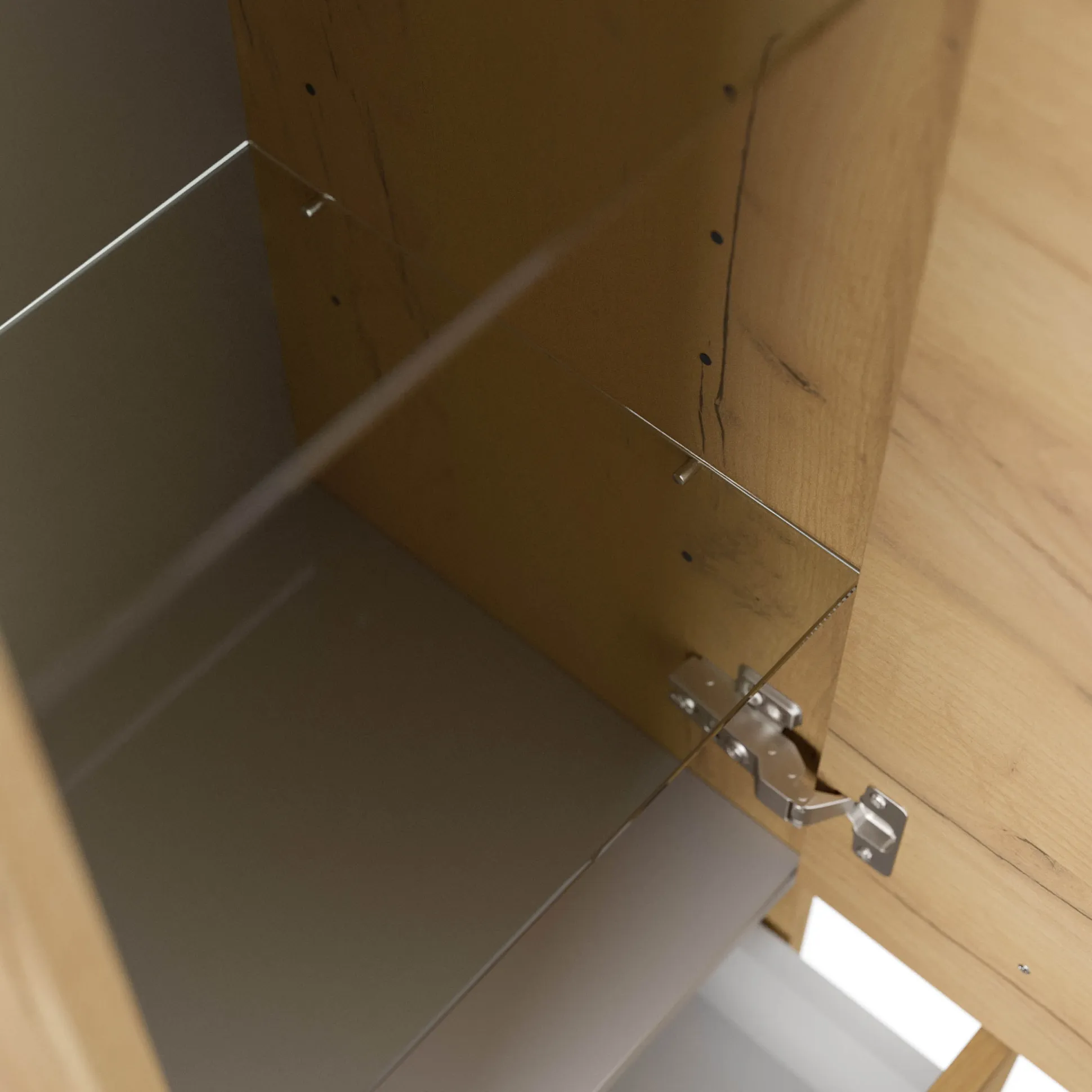 De Badkamerkast Derby Eiken 120 cm brengt een warme, natuurlijke uitstraling in je badkamer. Ontworpen in Duitsland en vervaardigd uit hoogwaardig spaanplaat, is deze kast afgewerkt in een realistische eiken Gold-look voor een authentieke houtuitstraling. Met soft-close deuren en laden biedt de kast ruime opbergruimte. De afmetingen zijn 35,2 cm breed, 120 cm hoog en 35,8 cm diep, en het gewicht bedraagt 30 kg.