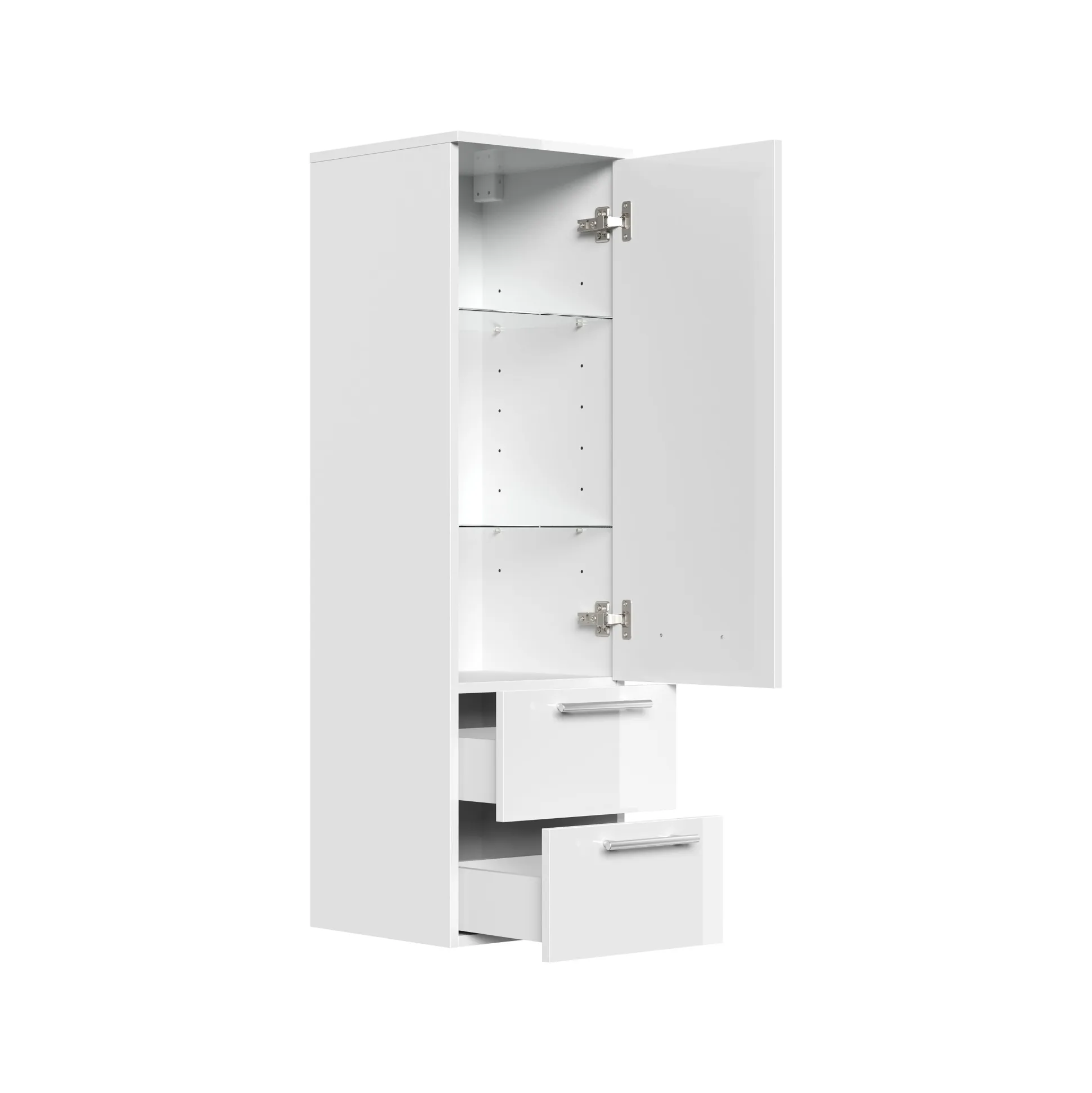 De Badkamerkast Derby Wit Hoogglans 120 cm is een royale en elegante opbergoplossing voor je badkamer. Ontworpen in Duitsland en vervaardigd uit hoogwaardig spaanplaat, is deze kast afgewerkt met een glanzende witte lak voor een frisse uitstraling. Met soft-close deuren en laden biedt de kast optimale opbergruimte. De afmetingen zijn 35,2 cm breed, 120 cm hoog en 35,8 cm diep, en het gewicht bedraagt 30 kg.