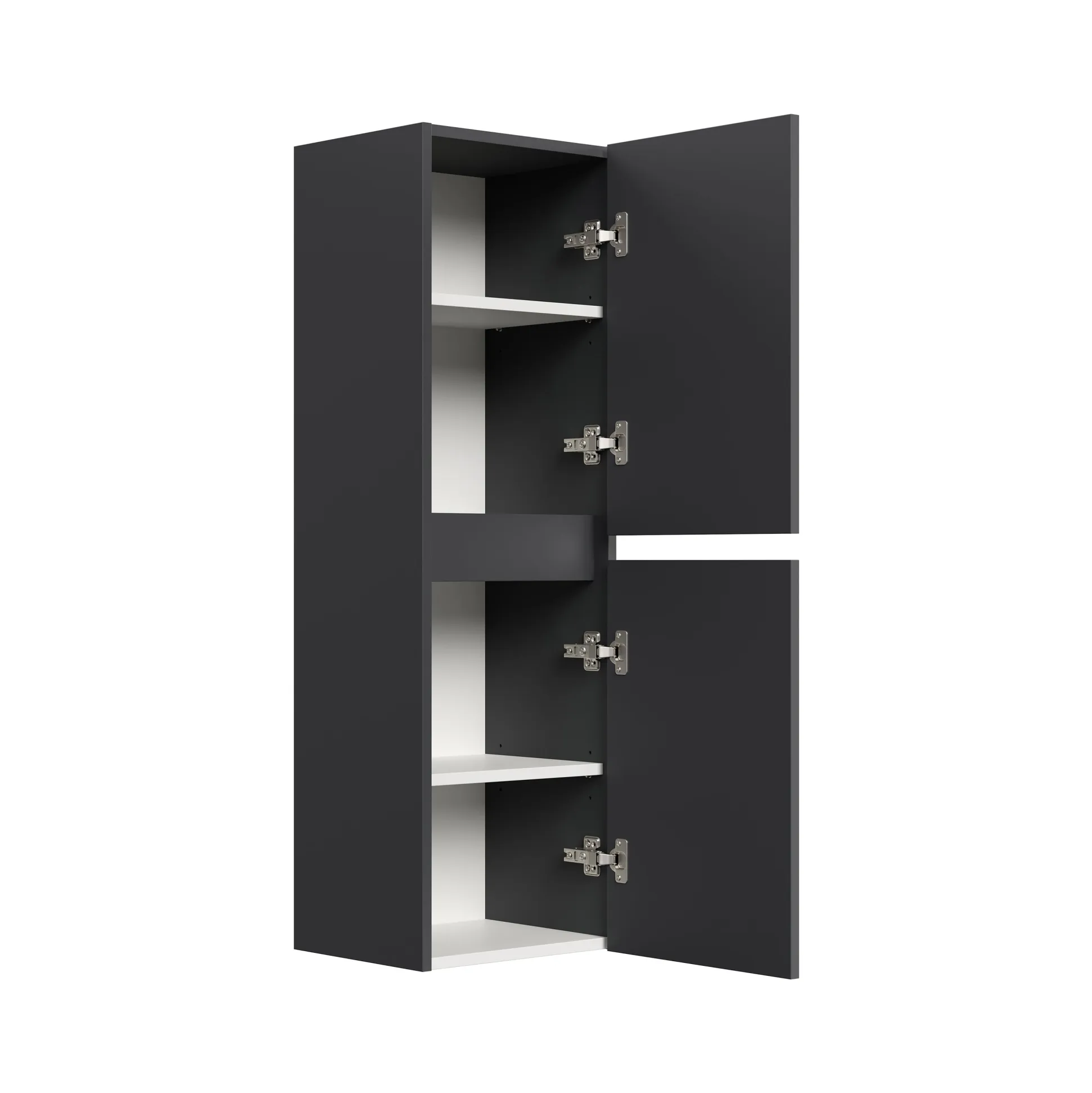 De badkamerkast Phoenix Grafiet 112 cm heeft een moderne, matte afwerking die vingerafdrukken voorkomt en een luxe uitstraling geeft. De kast is voorzien van een soft-close deur en verstelbare legplanken, waardoor je eenvoudig al je badkamerbenodigdheden geordend kunt opbergen.