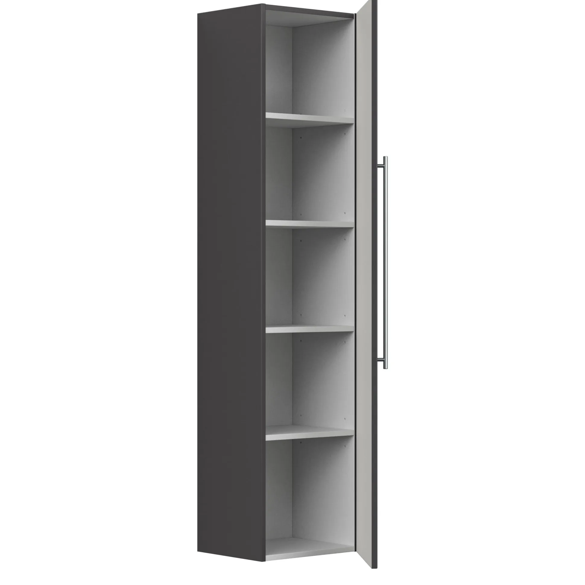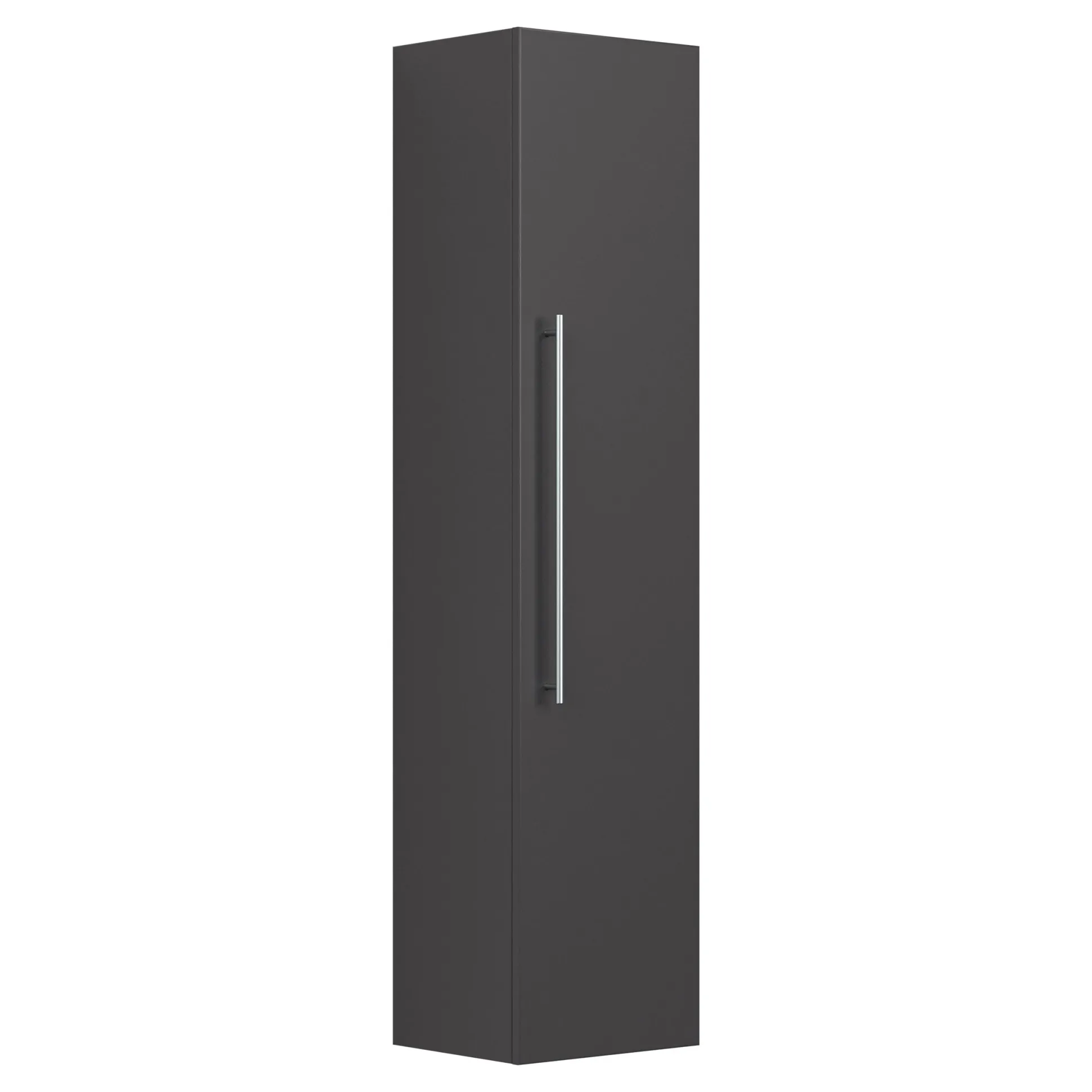 Deze hoge en praktische design opbergkast heeft 5 opbergplanken om spulletjes of handdoeken in op te bergen en kan worden gesloten met een deur met soft-close systeem. Het is mogelijk om de aanslag links of rechts op de deur te monteren. De handgreep is geproduceerd van hoogwaardig RVS en geeft de kast een moderne look. De kast is 35cm breed, 150cm hoog en 30cm diep. De kast kan worden uitgevoerd in hoogglans wit, antraciet, beton of eiken.