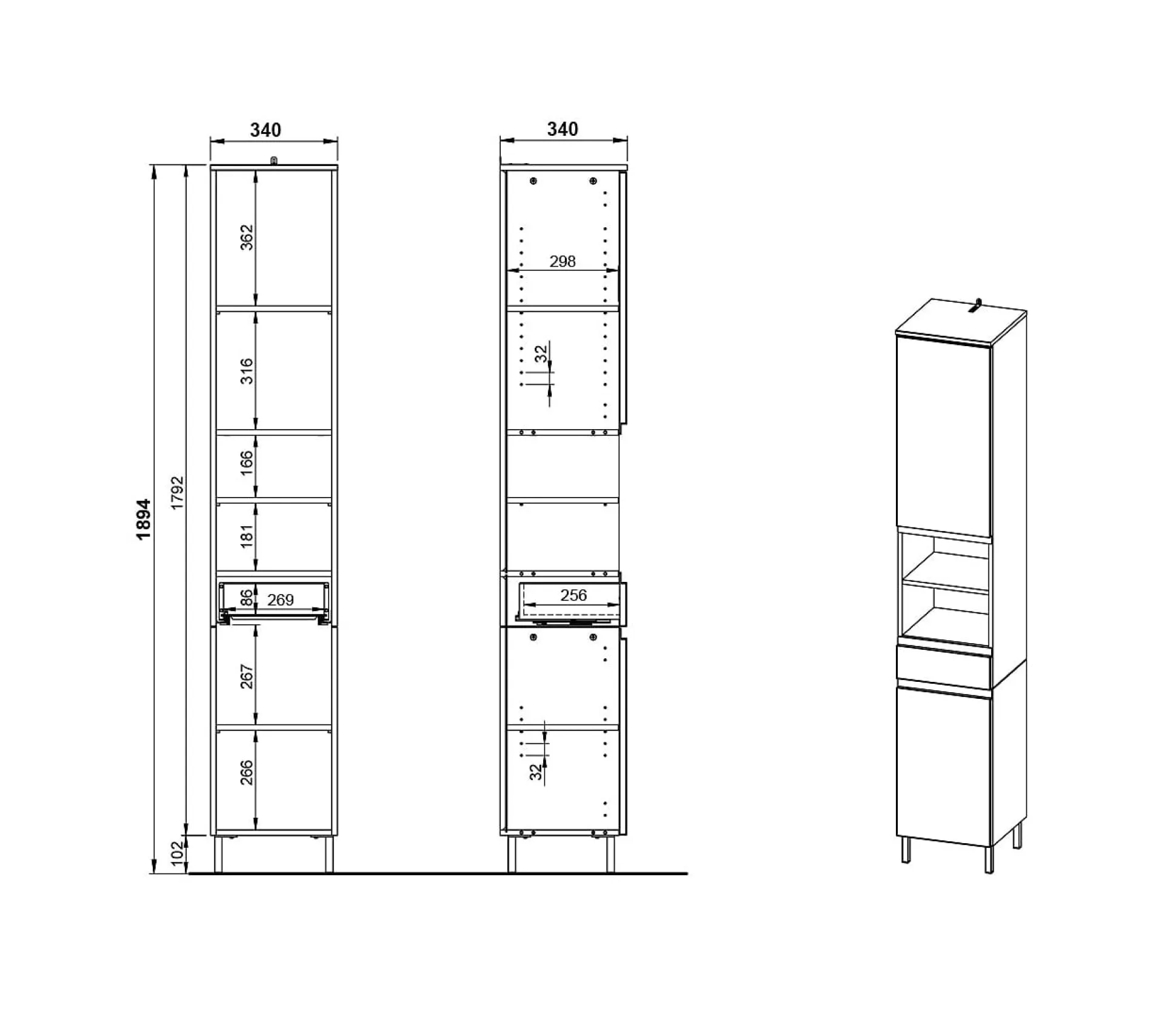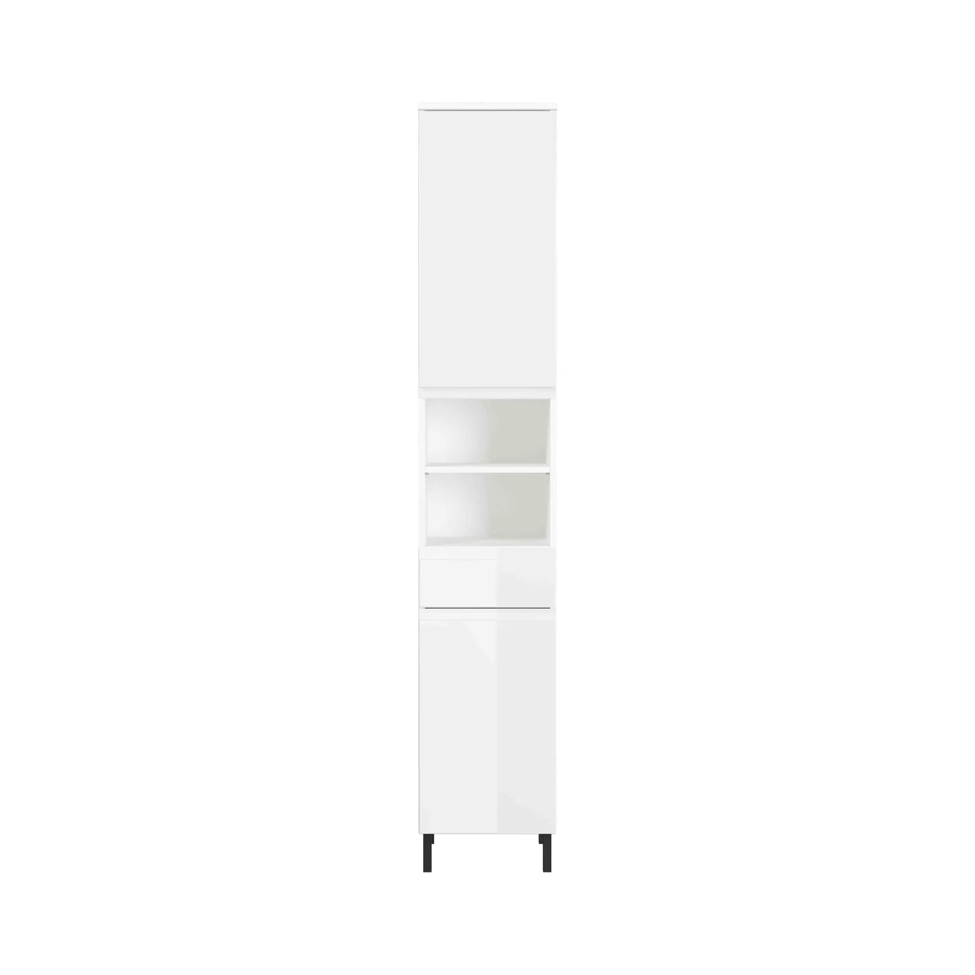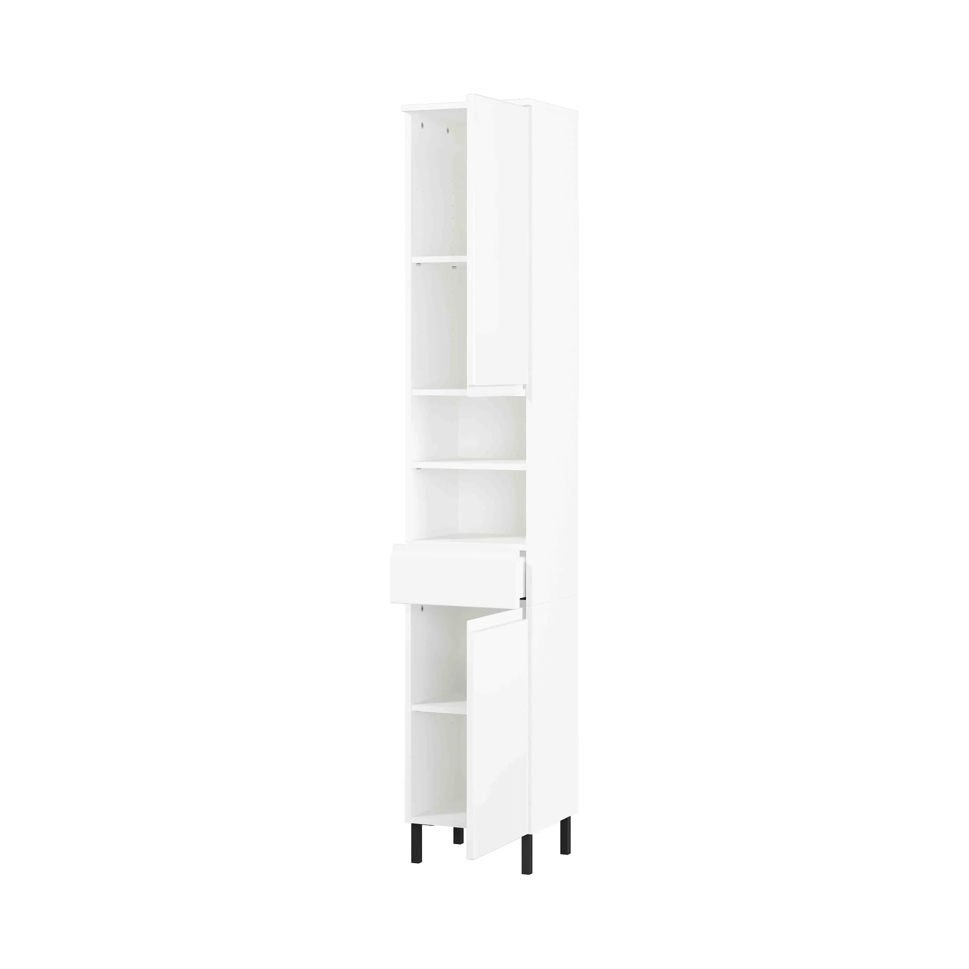 Deze badkamerkolomkast kun je gemakkelijk kwijt door zijn ideale afmetingen van 34 x34 centimeter. Door de hoogte van 190 centimeter ben je echter gegarandeerd voorzien van voldoende opbergruimte, deze is ook nog naar wens in te delen door de verstelbare legplanken. Gepoedercoat metalen pootjes in combinatie met geruisloos sluitende deuren en laden maken dit meubelstuk helemaal af. Geproduceerd in Duitsland, dit staat voor degelijke kwaliteit en een lange levensduur. Gemakkelijk te monteren doormiddel van de meegeleverde montagehandleiding. Bekijk ook de andere elementen uit deze badkamerserie!