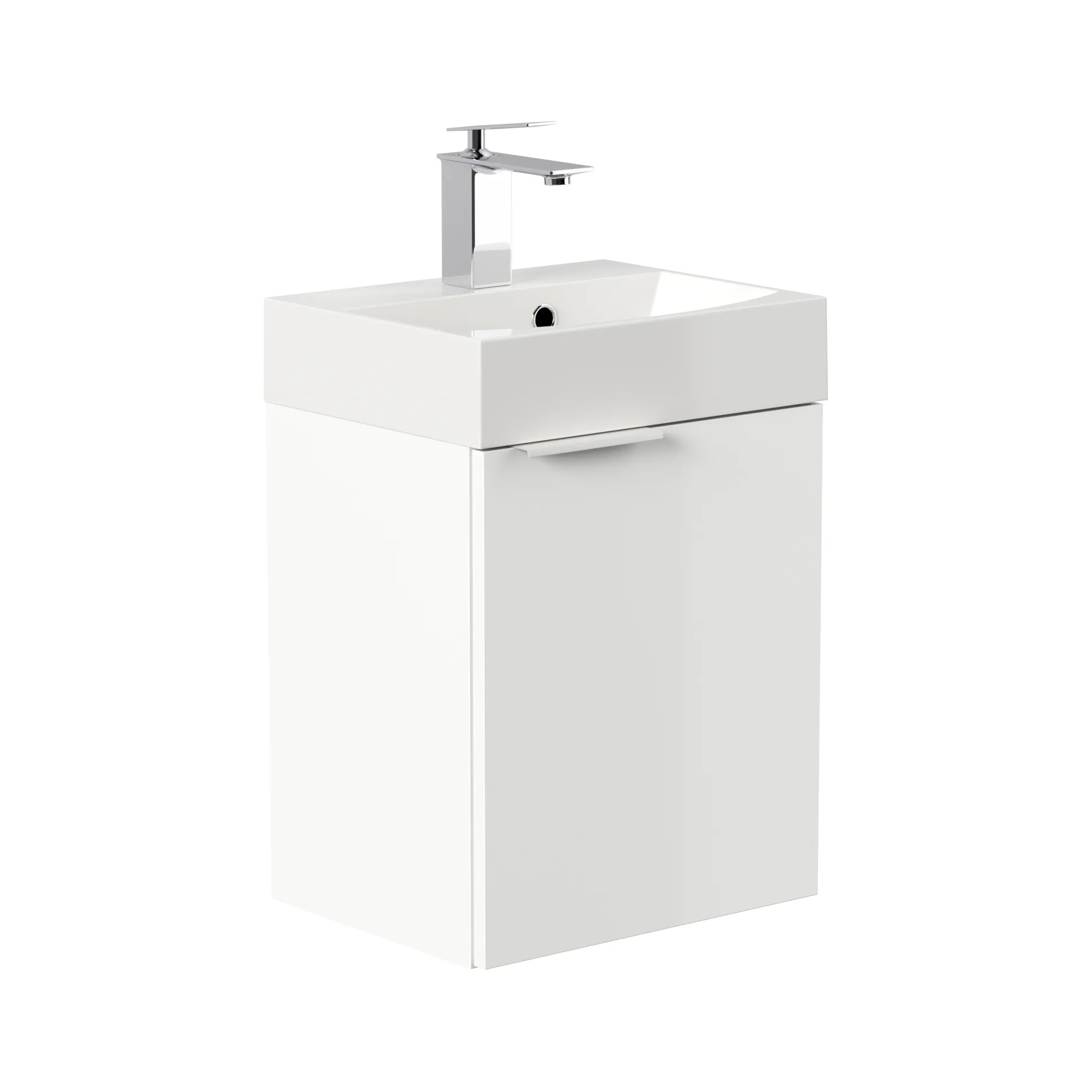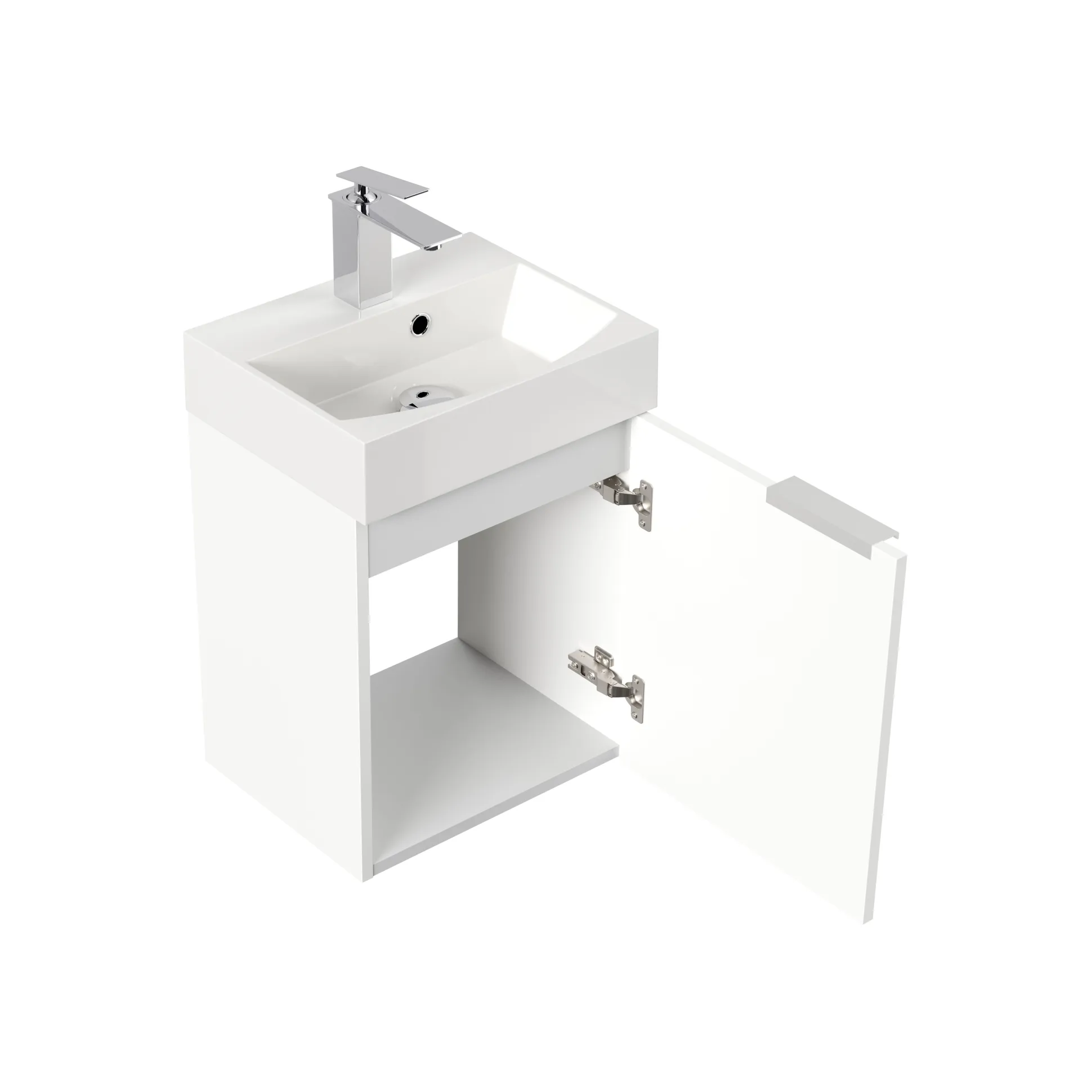 Het Badmeubel Annecy Wit Hoogglans 40 cm is een moderne badkameroplossing, ontworpen in Duitsland. Dit meubel is vervaardigd uit hoogwaardig spaanplaat en afgewerkt met een glanzende witte lak, waardoor het een frisse en luxueuze uitstraling heeft. Het systeem beschikt over deuren en laden met soft-close en een keramische wastafel, vervaardigd uit gegoten mineraal, voor eenvoudig onderhoud. De afmetingen zijn 40 cm breed, 56,3 cm hoog en 31,8 cm diep.