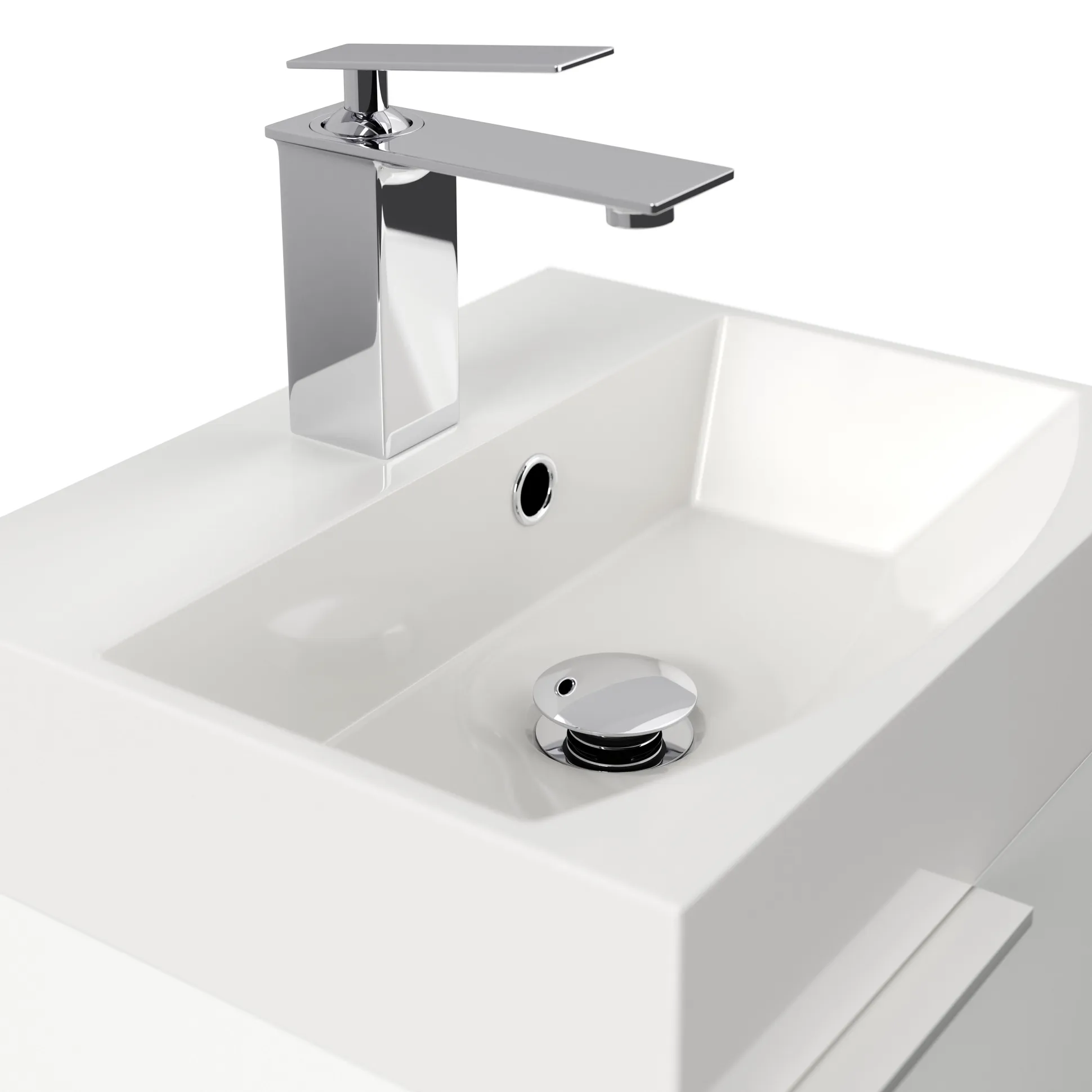 De wastafelkast wordt geleverd exclusief kraan, toevoerleidingen naar de kraan, afvoerplug en zwanenhals.