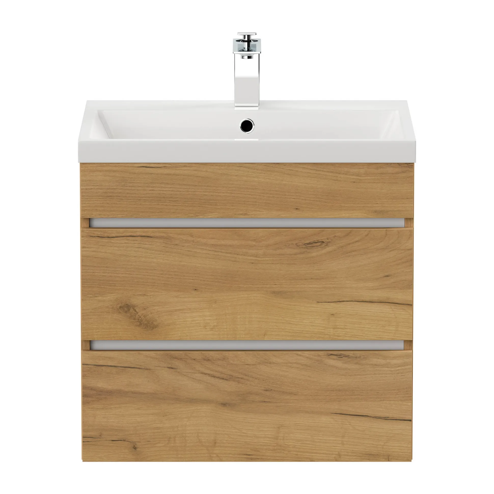 Het Badmeubel Atlanta Eiken 60 cm brengt een warme, natuurlijke sfeer in je badkamer. Dit meubel is ontworpen in Duitsland en vervaardigd uit spaanplaat, afgewerkt in een authentieke eiken Gold-look die een realistische houtoptiek biedt. De keramische wastafel, gemaakt van mineralguss, is gemakkelijk schoon te maken en werkt samen met de soft-close deuren en laden voor een stille werking. Met afmetingen van 60 cm breed, 58,4 cm hoog en 46 cm diep is dit meubel perfect voor een gezellige en praktische badkamer.