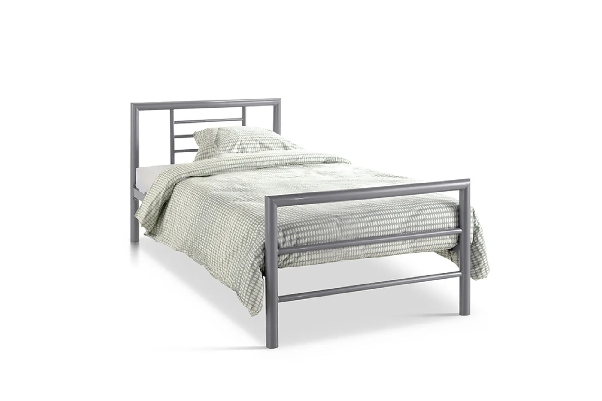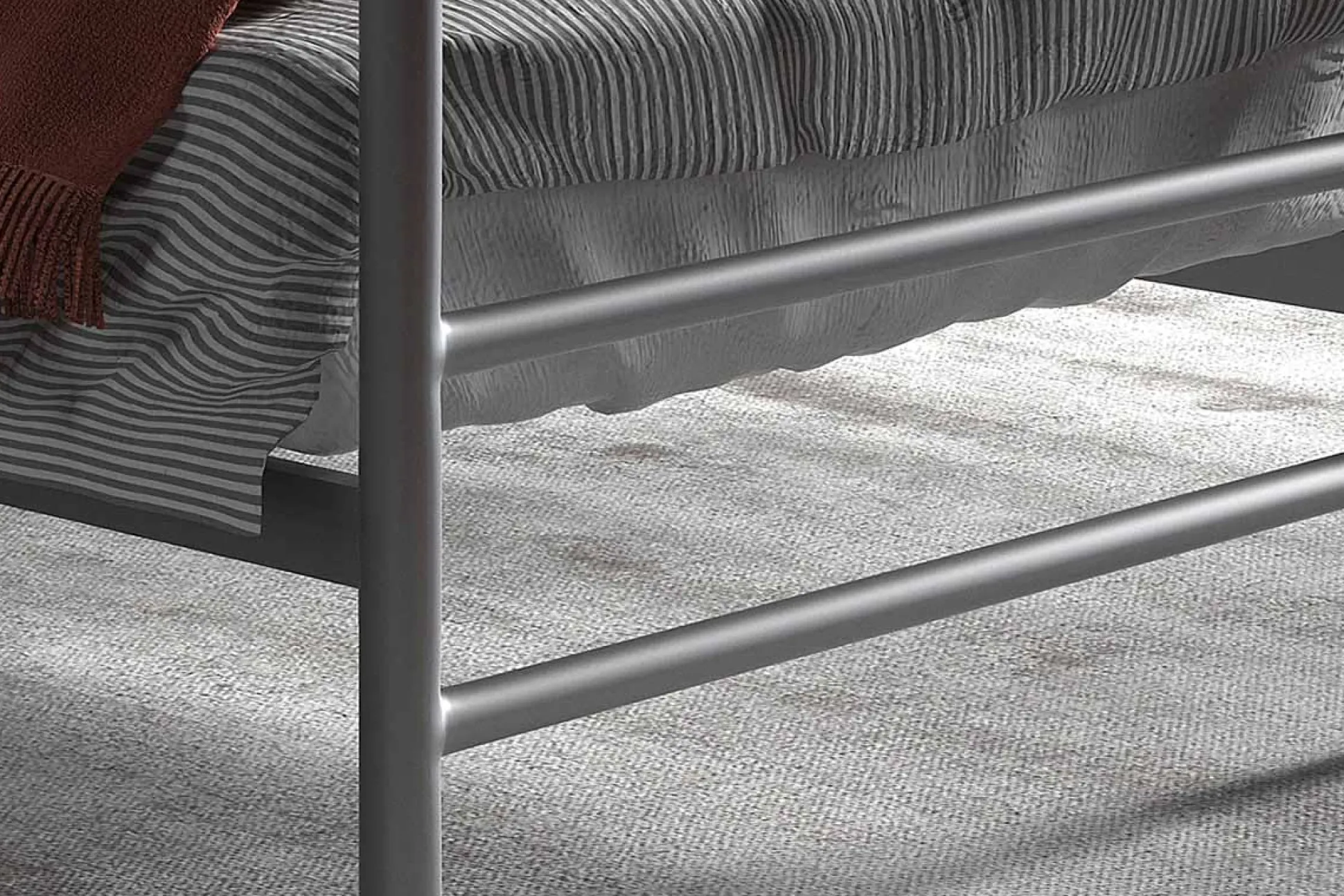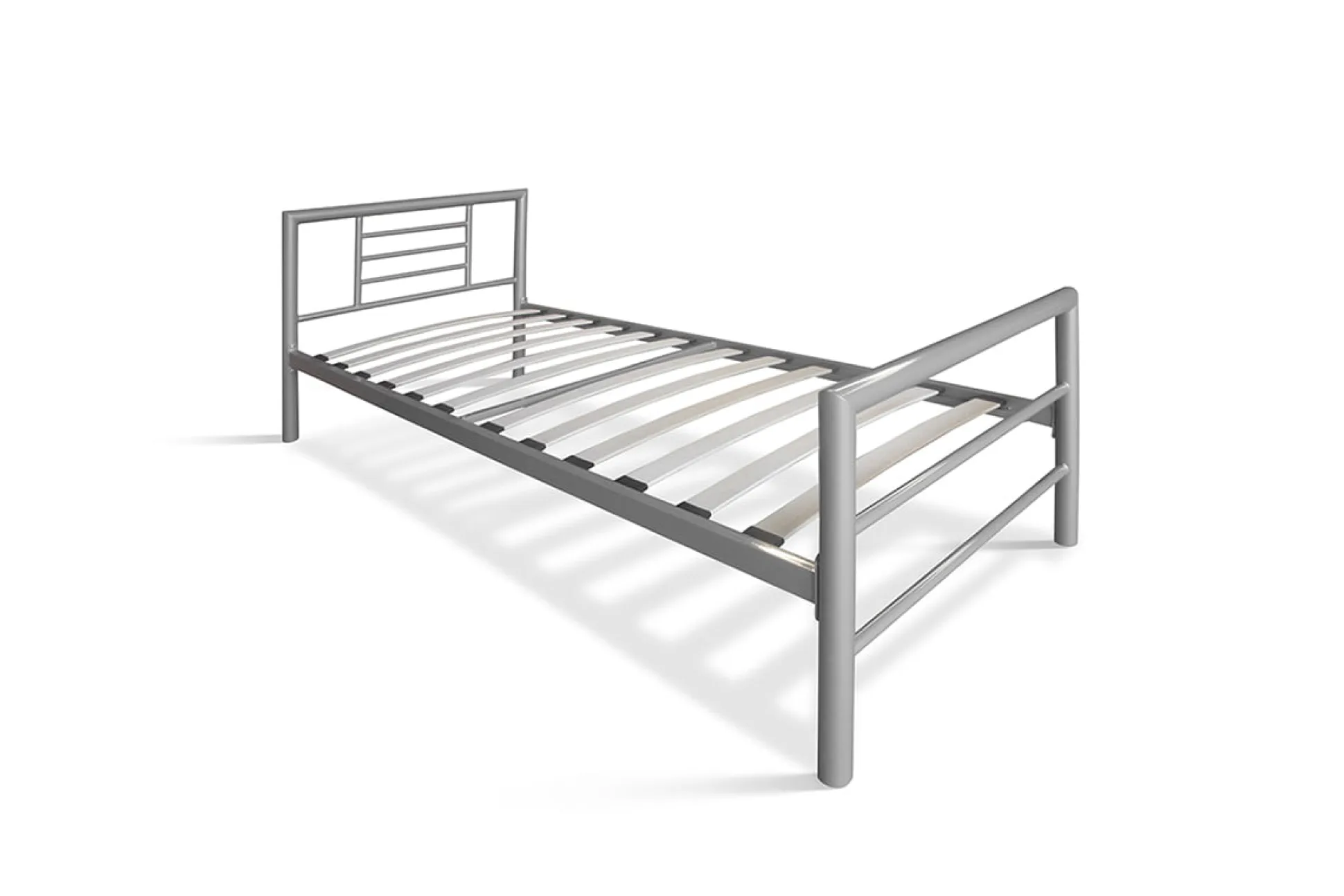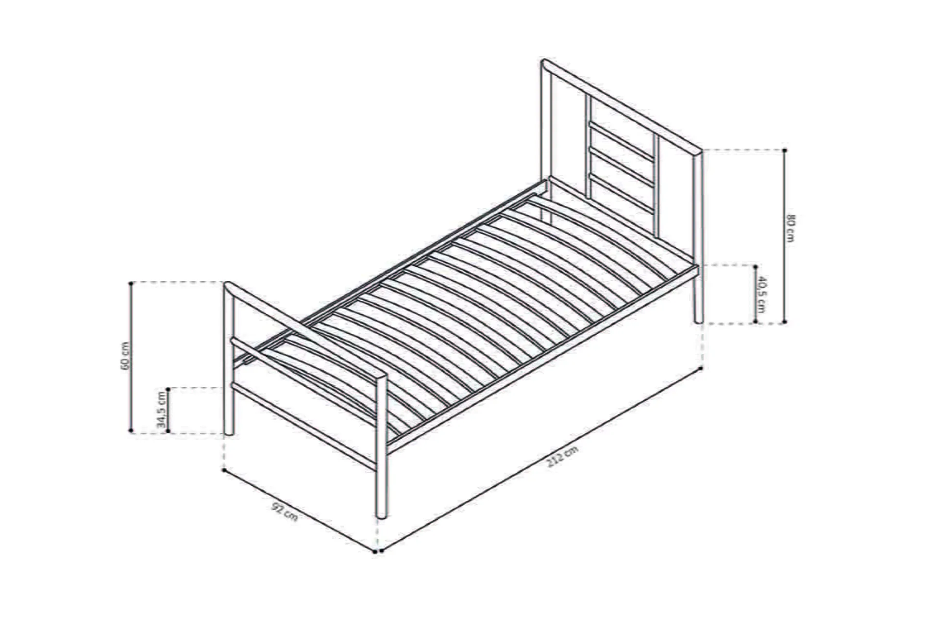 Stevig metalen eenpersoonsbed, onder het bed is een ruimte van 34,5 cm hoog voor het opbergen van al je spullen. Het bed wordt geleverd inclusief lattenbodem. Verkrijgbaar in meerdere afmetingen. Eenvoudig te monteren met behulp van de bijgeleverde montagetekening.