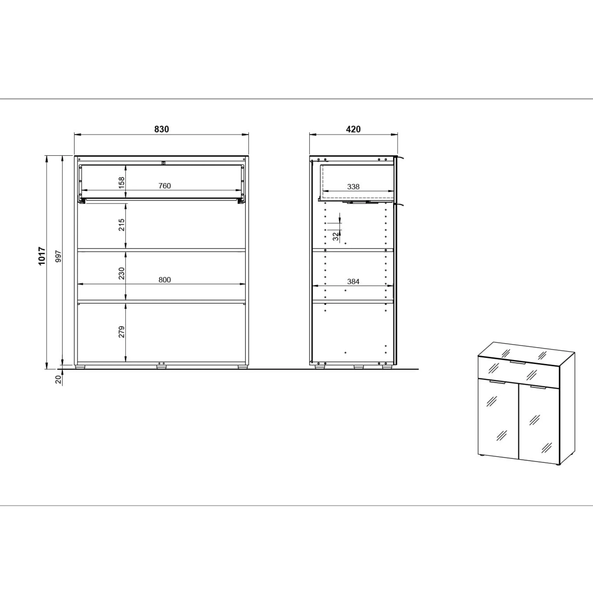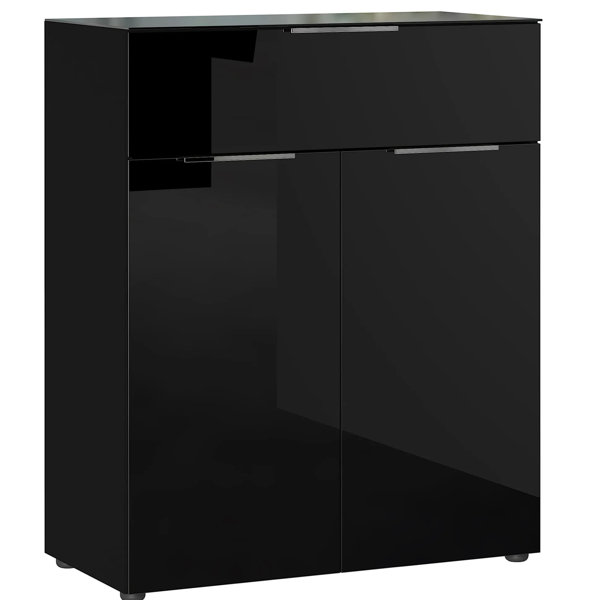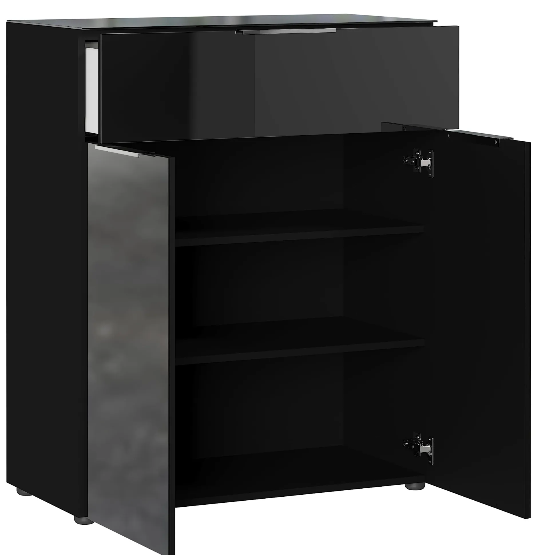 Deze bergkast heeft een combinatie van een deur en een lade. Achter de deuren met softclose-systeem liggen 2 legplanken zodat je 3 opbergvakken hebt.