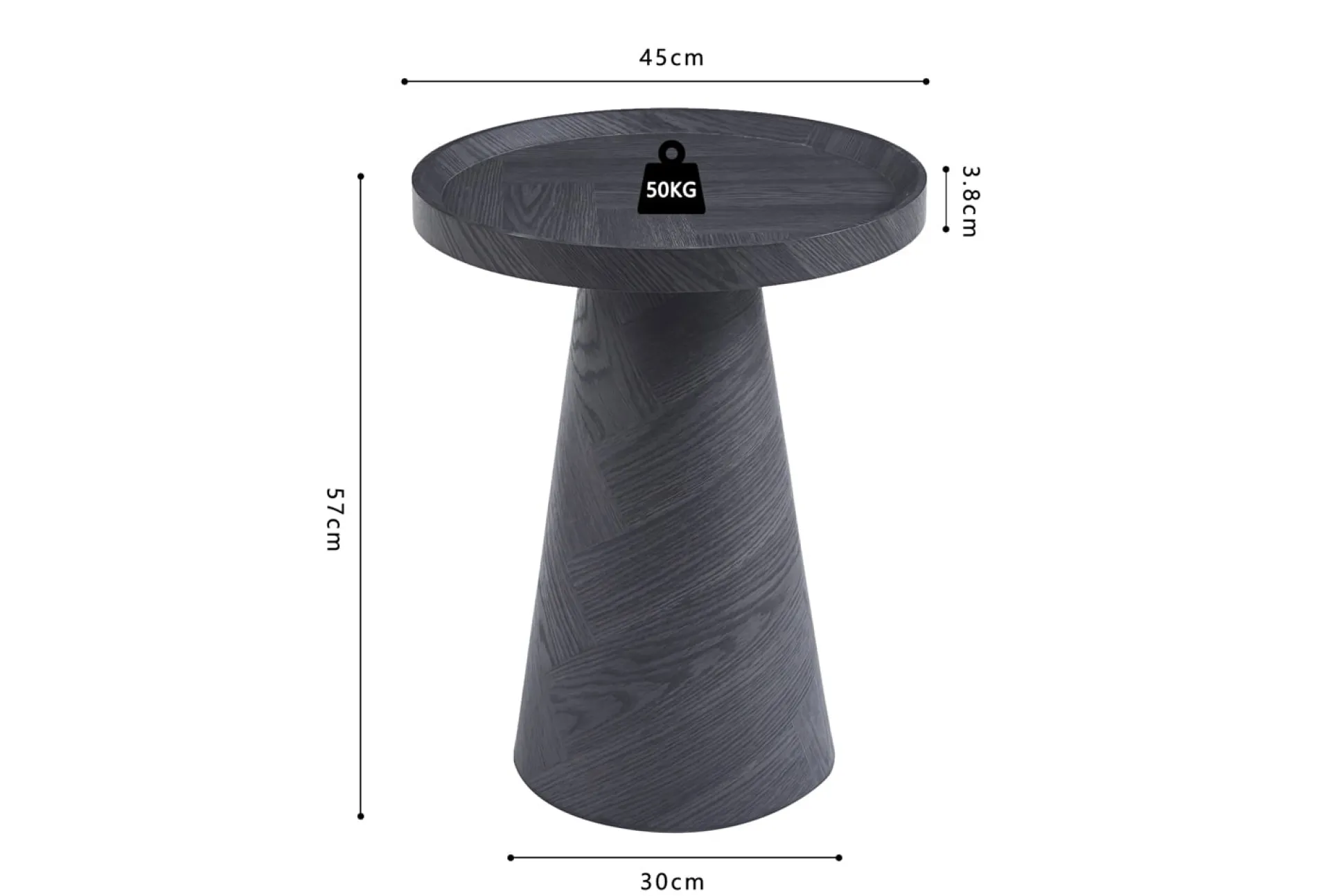 Het tafelblad en de onderstructuur zijn vervaardigd uit hoogwaardig MDF, wat zorgt voor een stevige constructie en een eigentijdse uitstraling. De donkergrijze kleur geeft de bijzettafel een moderne touch, waardoor hij perfect past in verschillende interieurstijlen.