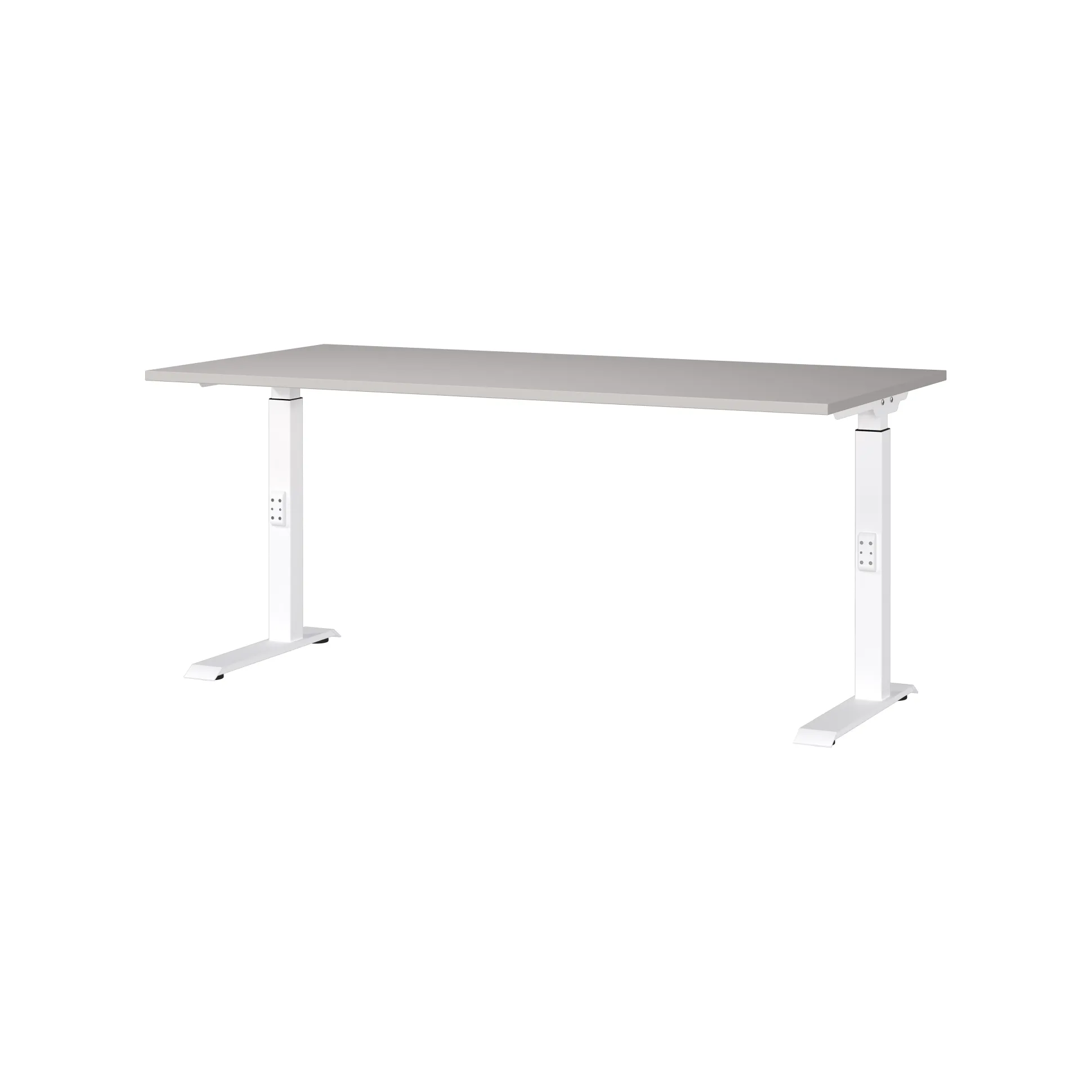 Ontdek het Bureau Galileo van 160 cm breed, een praktisch en mechanisch in hoogte verstelbaar bureau met twee C-voeten. Het tafelblad kan tot 80 kg dragen en is afgewerkt met een sterke melamine, het frame is vervaardigd van poeder-gecoat metaal.