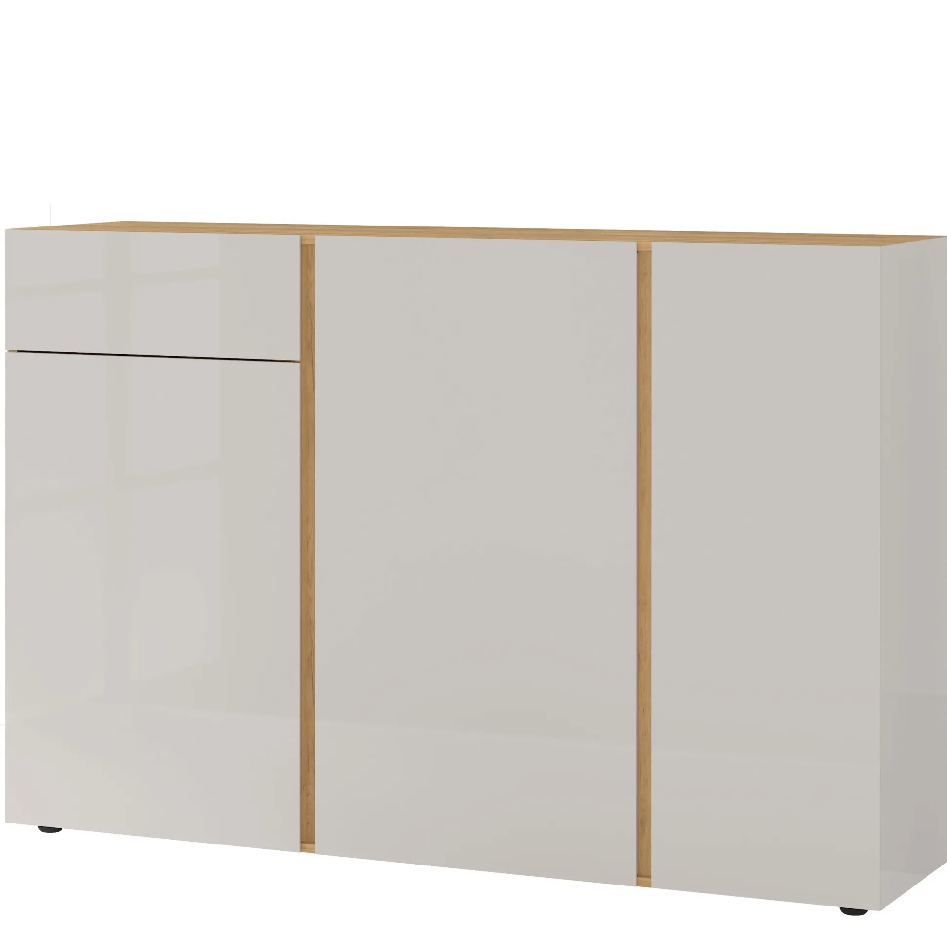 Deze kast heeft assymetrische deuren welke de kast een speciaal karakter geeft. Achter de deuren liggen 2 verstelbare legplanken. De kast is uitgevoerd in een kleurcombinatie van beige met rustiek eiken. Links is een deur waarboven een lade is gemaakt. Rechts zijn de 2 assymetrische deuren.
