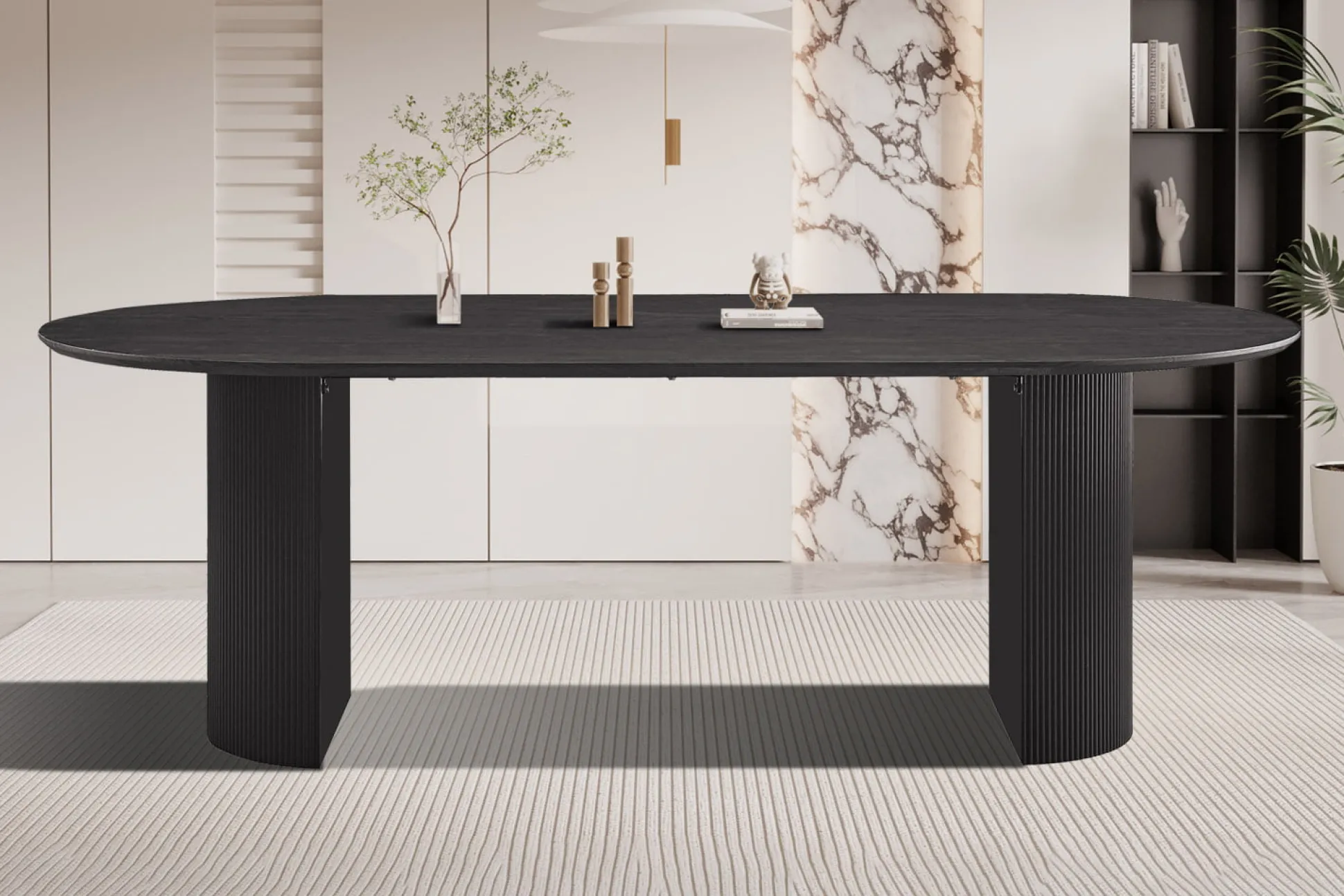 Deze prachtige eetkamertafel Odile is perfect om gezellig te tafelen met familie en vrienden. De ovale vorm zorgt voor een warme uitstraling in je eetkamer. De tafel heeft een tafelblad van 25 mm MDF met een houtlook afwerking en een stevig MDF onderstel, waardoor hij duurzaam en stabiel is. Het tafelblad voelt natuurlijk aan en is gemakkelijk schoon te houden. Of je nu een feestje hebt of gewoon met je gezin wilt dineren, deze tafel past zich aan aan verschillende situaties.