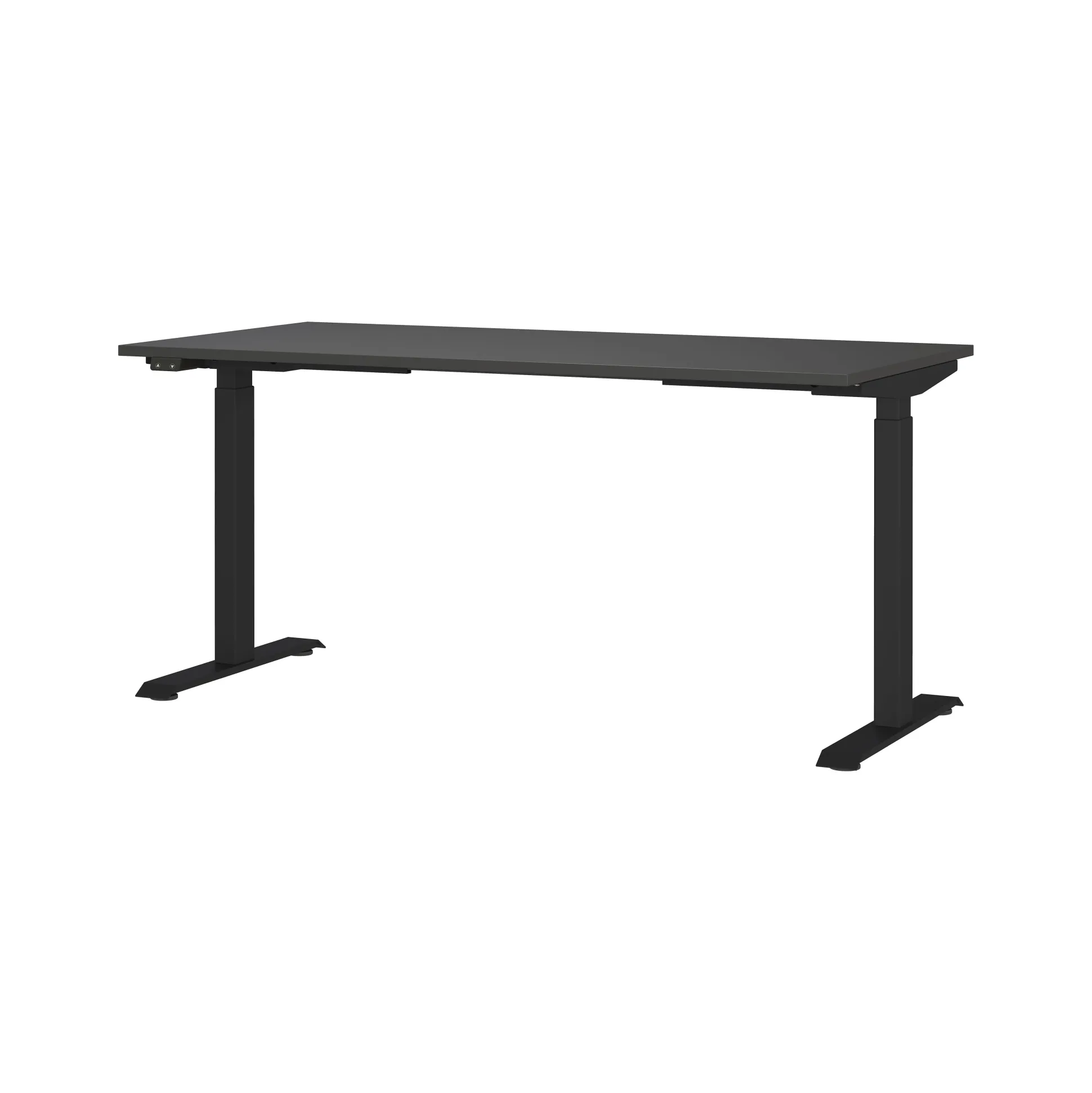 Het bureau is uitgerust met twee T-poten en een tafelblad, belastbaar tot 80 kg, in grafietkleur. Het frame is vervaardigd van poedergecoat metaal in zwart.