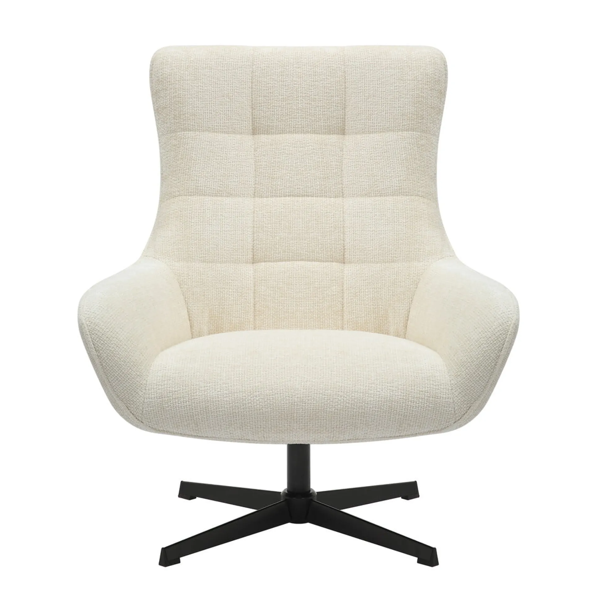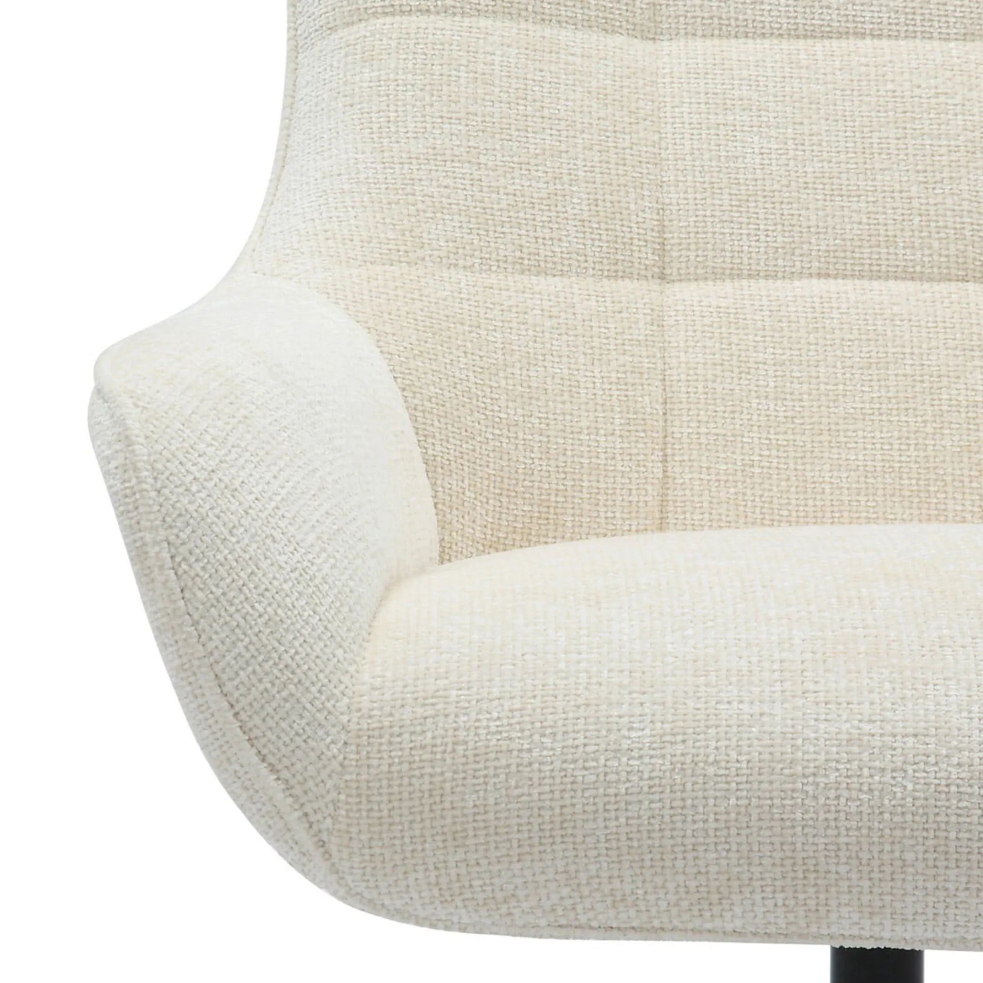 Deze beige fauteuil in chenille stof biedt een comfortabele zitervaring met een draaifunctie. De stoel is gevuld met polyether schuim en een pocketverenkern voor medium stevig zitcomfort. De zithoogte is ongeveer 44 cm, de zitbreedte 55 cm en de zitdiepte 54 cm. De armleuningen hebben een hoogte van 54 cm en de rugleuning is 66,5 cm hoog. Het onderstel is gemaakt van zwart gepoedercoat metaal.