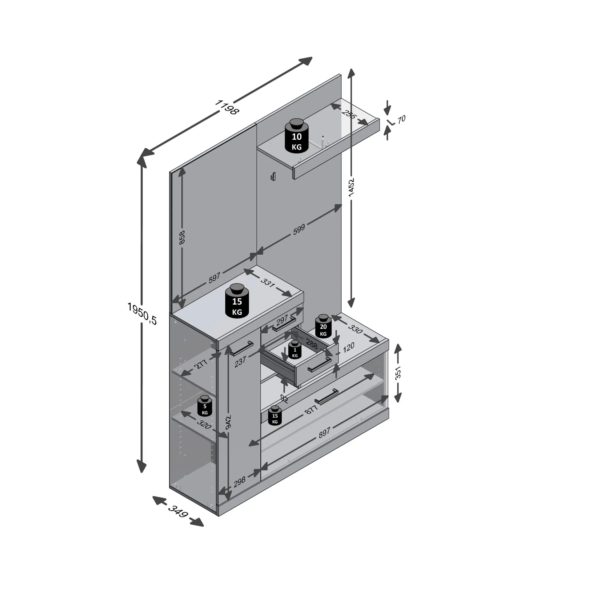 Met deze uitgebreide garderobekast richt je je hal in één keer helemaal in. Voldoende ruimte voor meerdere jassen aan de haakjes rechts bovenin. Aan petten en hoeden is ook gedacht, hiervoor is boven de kapstokhaken een plank gemaakt. Links een spiegel zodat je nog even snel een blik op jezelf kunt werpen voordat je naar buiten loopt. Voldoende opbergruimte voor schoenen en andere accessoires onderin het garderobemeubel. Eenvoudig te monteren door middel van de bijgeleverde montagehandleiding.