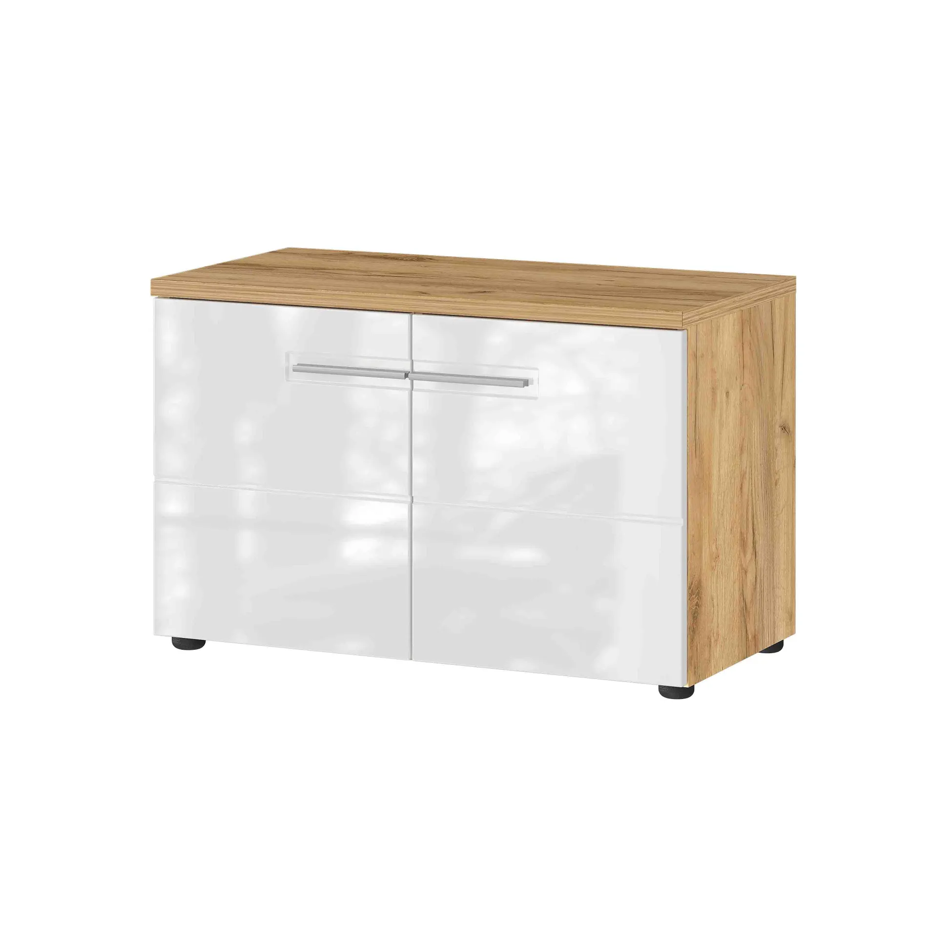 Stijlvolle halbank met voldoende opbergruimte voor ongeveer 8 paar schoenen. Zodra je de juiste schoenen hebt uitgekozen kun je deze gemakkelijk zittend aantrekken. Achter de deuren bevinden zich 2 verstelbare legplanken. De hoogglans MDF-fronten geven in combinatie met de kenmerkende groeven een warme uitstraling aan deze kast. Zitkussen is separaat bij te bestellen. Gemakkelijk te monteren door middel van de bijgeleverde montagehandleiding. Bekijk ook de andere producten uit deze serie!